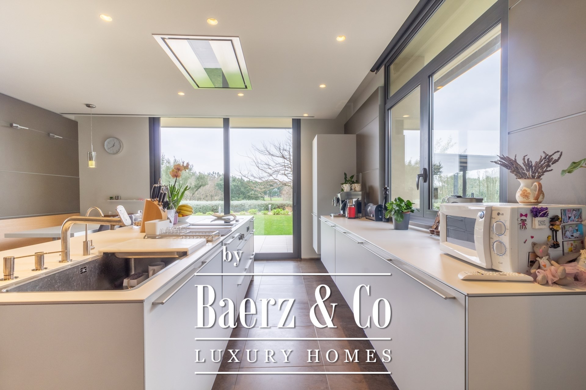 في الخارج، تحيط الحدائق الناضجة بالمسبح مع شلال، ومطبخ خارجي مع منطقة شواء، ومساحات جلوس واسعة للاسترخاء. تدفئة أرضية، وتكييف مركزي عبر القنوات، ونوافذ كهربائية، وصوت مدمج، ونظام مراقبة متكامل، ومصعد جميعها تؤكد على معايير الراحة والأمان.