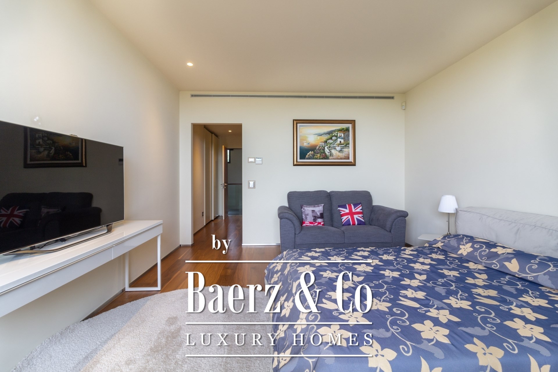يحتوي الطابق العلوي على جناح رئيسي مع غرفة ملابس وحمام مزود بدش وجاكوزي، بالإضافة إلى شرفة خاصة تطل بلا عوائق على ملعب الجولف. كما توجد جناح إضافي وغرفة متعددة الاستخدامات تخدم متطلبات العمل والاسترخاء.