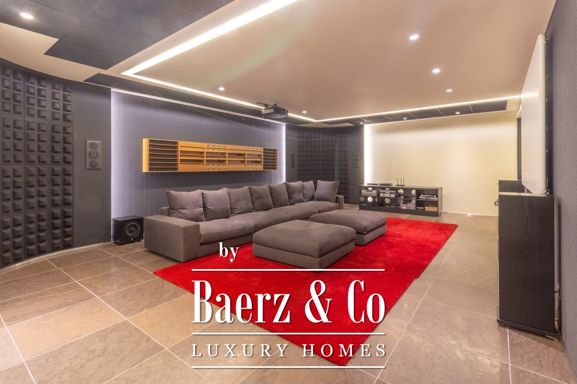 يمتد الطابق السفلي ليشمل سينما منزلية وجناح سبا مع جاكوزي وساونا ومنطقة استرخاء مخصصة، بالإضافة إلى غرفة موظفين بمدخل مستقل. صالة رياضية وغرفة ألعاب تضيف مزيداً من المرونة.