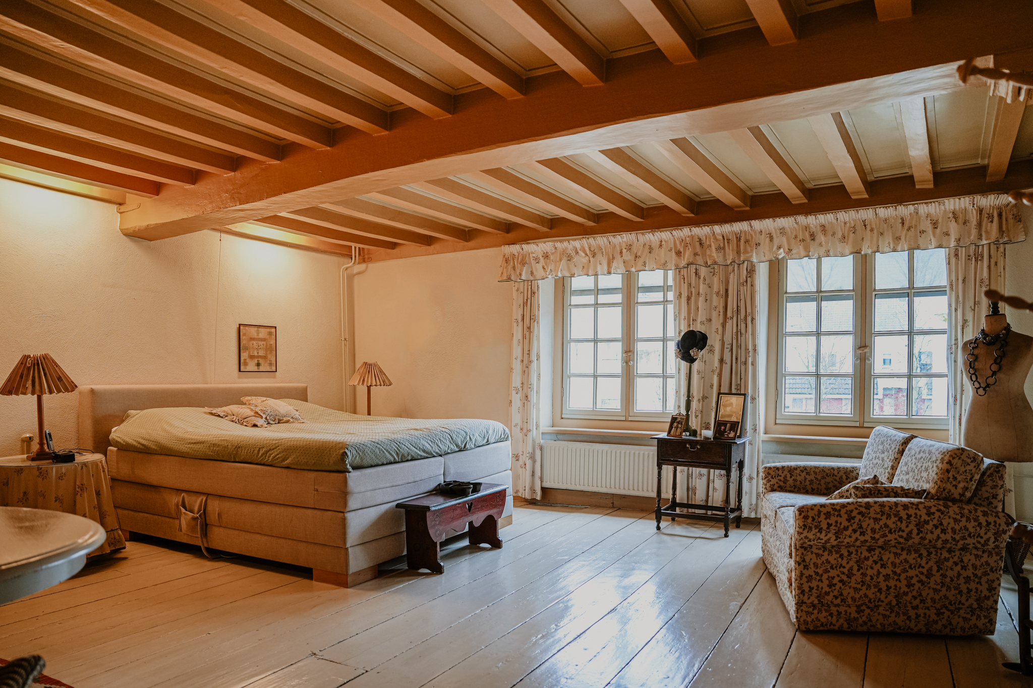 في الطابق العلوي، يتدفق الضوء عبر نوافذ ساقطة على ألواح الأرضية الواسعة. وتتميّز كل غرفة من السبع غرف نوم بعوارض أصلية أو تغطيات جدارية أنيقة، بينما يوفر العلّية والغرف المدفأة إمكانيات إضافية. وتتواجد وسائل الراحة الحديثة بهدوء، منها التكييف، والتهوية الطبيعية، ونظام التدفئة Intergas HRe، مع إمكانية الاستمتاع بمدافئ مفتوحة. ويضمن الإشراف الدقيق من Monumentenwacht وأعمال الترميم الشاملة من الوكالة الهولندية للتراث الحفاظ بعناية على جميع التفاصيل.