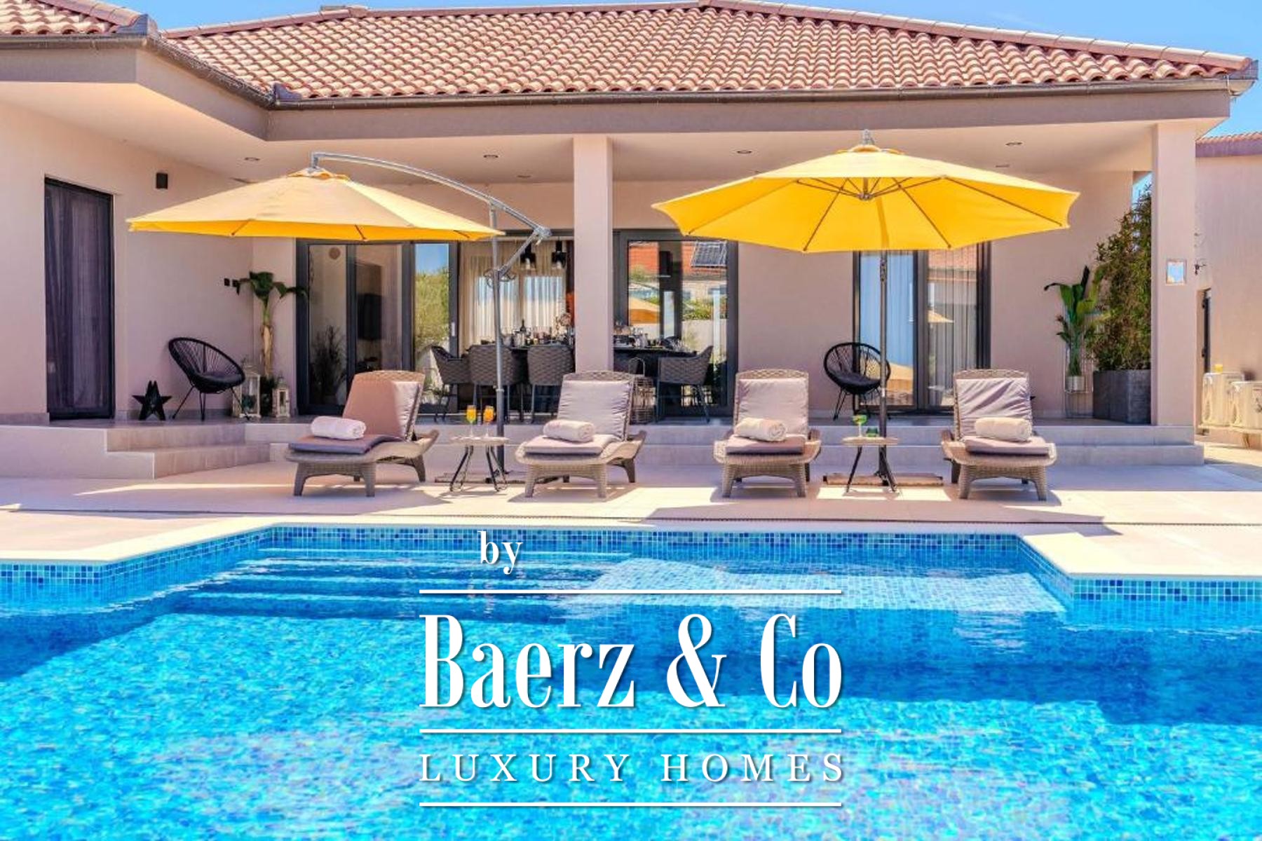 تقع الفيلا ضمن أرض تبلغ مساحتها 483 م²، ومصممة وفق أعلى معايير الراحة العصرية. تقع المرافق الأساسية مثل السوبرماركت، الصيدلية، المدرسة، ونبض حياة القرية الحيوي بالقرب من الفيلا، بينما تبعد وسط مدينة زادار مسافة قصيرة بالسيارة. هنا تتحدد وتيرة ووعود الحياة اليومية بتوازن دقيق بين الملاذ الهادئ وسهولة الوصول إلى نبض المدينة.