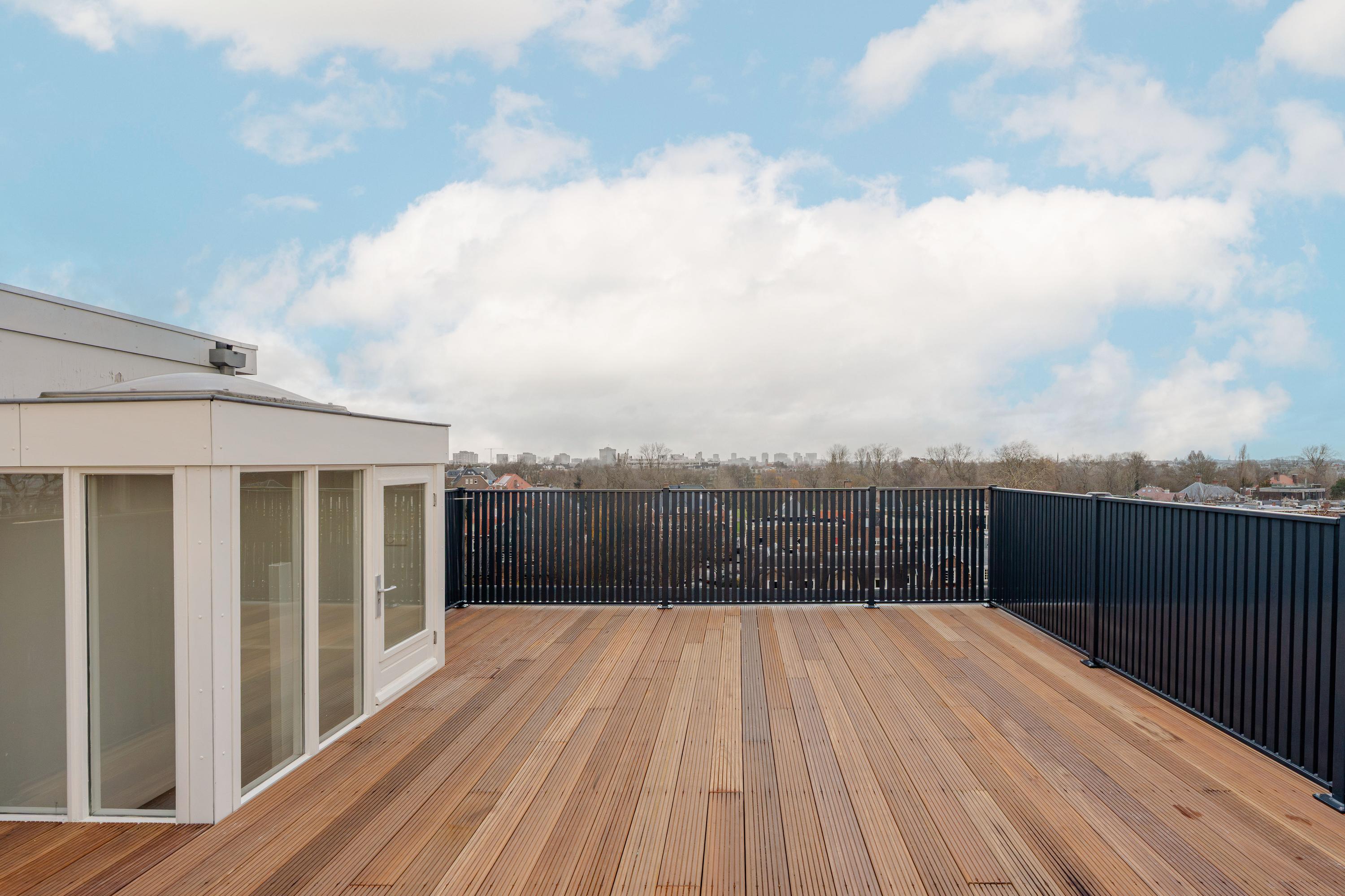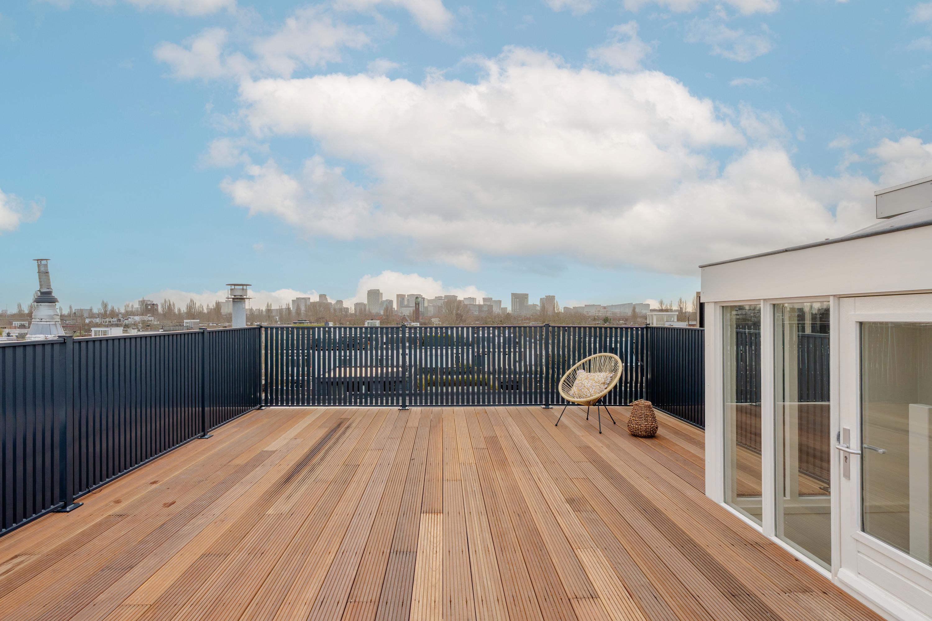 Das Apartment Amsterdam Oud-Zuid bietet ein anspruchsvolles Wohnerlebnis auf 102,4 m² Wohnfläche im vierten Stock einer eleganten Allee. Diese Wohnung im Amsterdam Oud-Zuid zeichnet sich durch hohe Decken und eine markante Dachkonstruktion aus, die im hinteren Bereich in großzügige Dachfenster mündet. Der Wohnbereich ist lichtdurchflutet und ermöglicht einen freien Blick auf die grüne Stadtkulisse, wodurch eine seltene Ruhe im Herzen der Stadt entsteht.