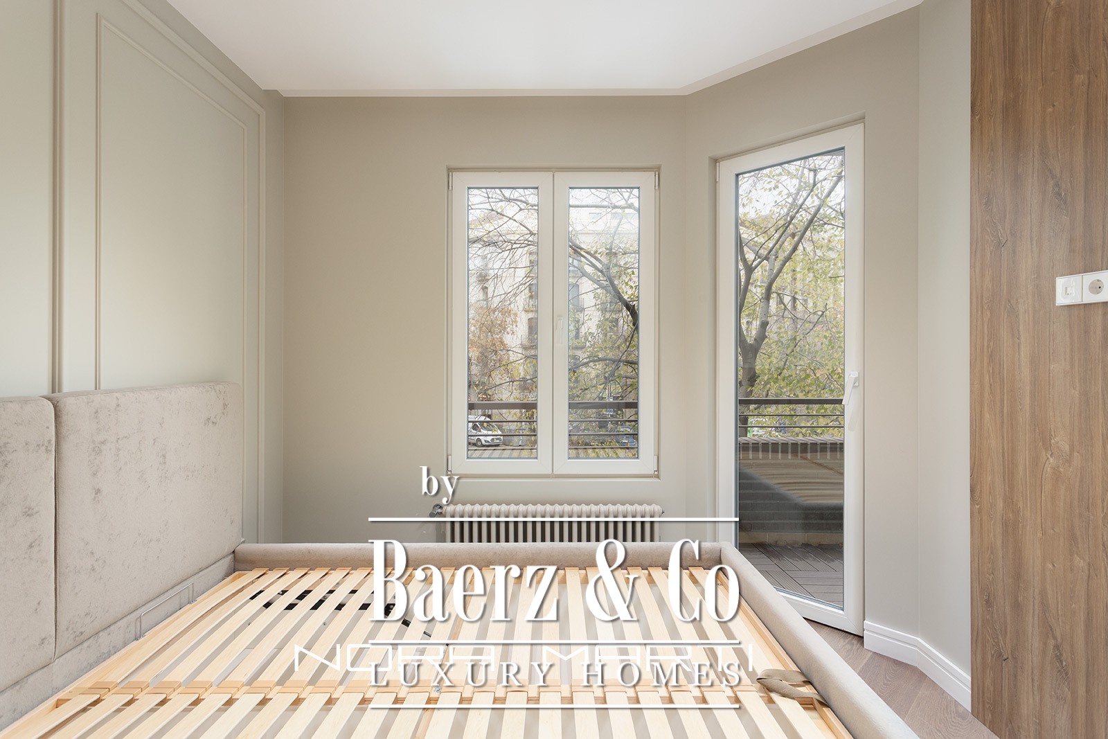 Die Liebe zum Detail zeigt sich in Eichenparkett, integrierten Einbaumöbeln und einer durchdachten Beleuchtung. Für ein angenehmes Raumklima sorgen eine zentral gesteuerte Klimaanlage, Mitsubishi-Splits, ein Bosch-Gasboiler sowie IRSAP Tesi Designheizkörper – Komfort das ganze Jahr über. Ein Stellplatz im Gebäude kann optional übernommen werden und erhöht die alltägliche Bequemlichkeit in diesem urbanen Umfeld.