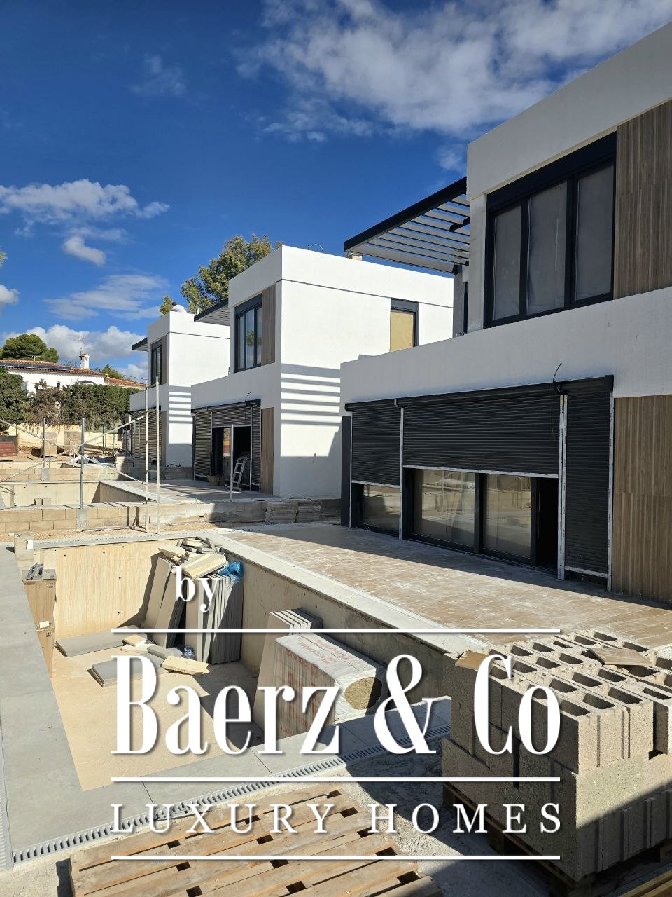 Im Obergeschoss öffnen sich zwei weitere Schlafzimmer zu einer Terrasse und einer Dachfläche mit ungehindertem Blick auf das Meer, Benidorm und Altea. Der private Pool, die Sicherheitstür, die Garage und die Doppelverglasung runden das Anwesen ab und verbinden praktische Aspekte mit diskretem Luxus. Die Fertigstellung der Villa La Nucía ist für November 2025 geplant und bietet damit eine seltene Gelegenheit für anspruchsvolle Käufer, die nach einer neuen Luxusvilla in La Nucía mit mediterranem Flair und Nähe zu allen wichtigen Annehmlichkeiten suchen.