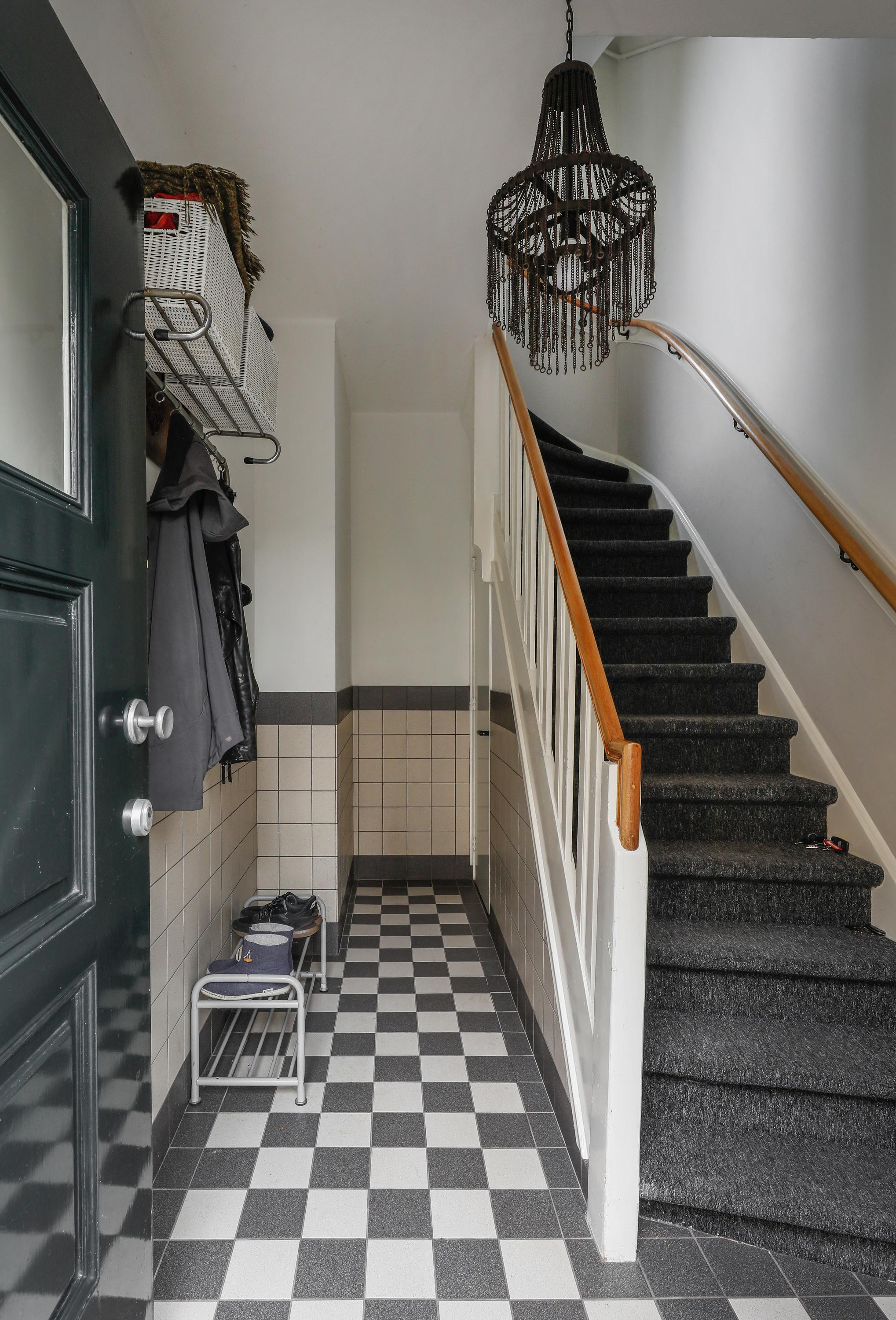 Private entrance with an exclusive hallway, featuring beautiful Winckelmans tiles and space for a coat rack and bicycle.