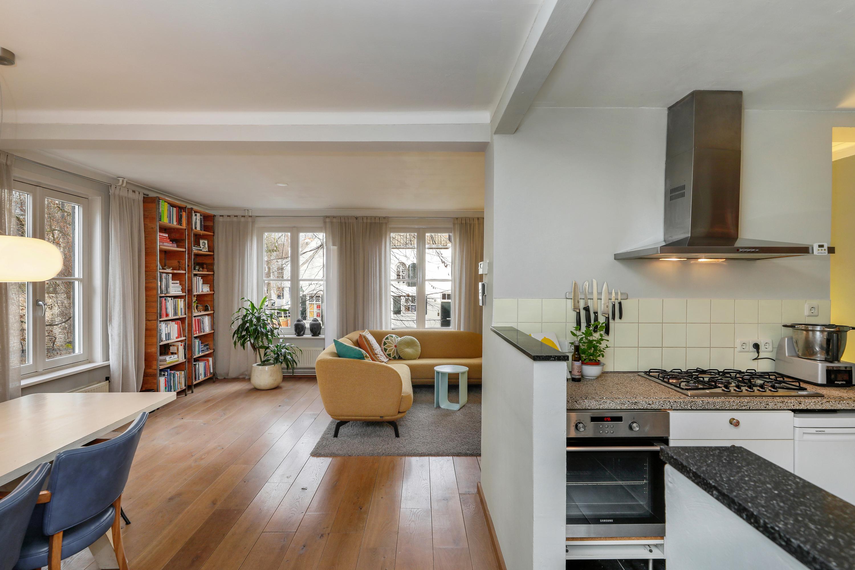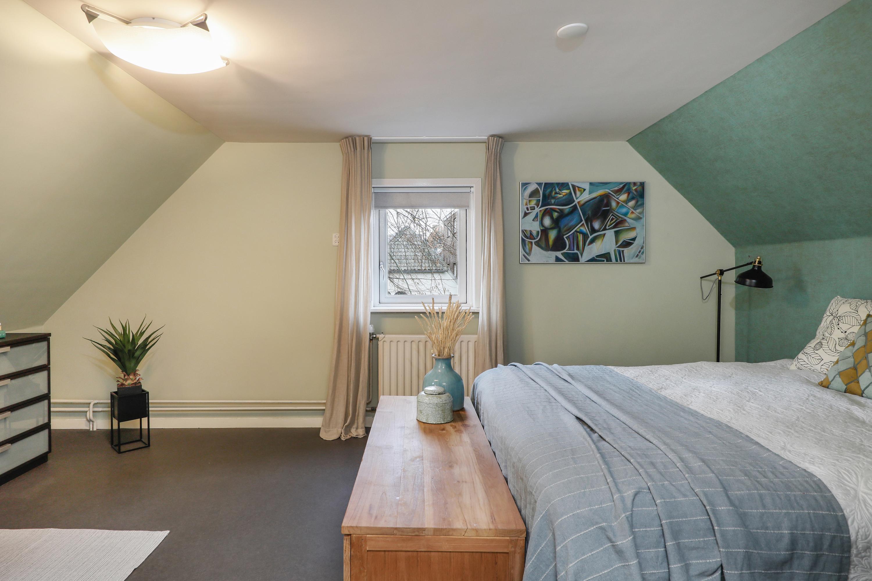 Located in the idyllic Sint Janskerkhof, right next to St. John's Cathedral, is this spacious and characterful upstairs apartment of approximately 125 m² with a roof terrace. A unique combination of tranquility, history, and city life, right in the heart of the city center yet surprisingly quiet.