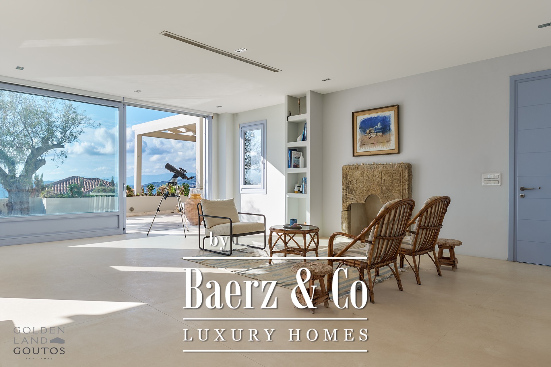 Outdoor living is effortless, with an infinity pool, dedicated leisure areas, barbecue and shaded dining spaces, all set against a luminous seascape. Practical amenities such as a private garage and basketball court reinforce a lifestyle attuned to both relaxation and recreation. The villa presents understated luxury, balanced between privacy and accessibility, and is ideally suited as a family haven or strategic property investment. The surrounding Argolis region, with its archaeological sites, villages and cultural destinations, completes a setting of enduring appeal.