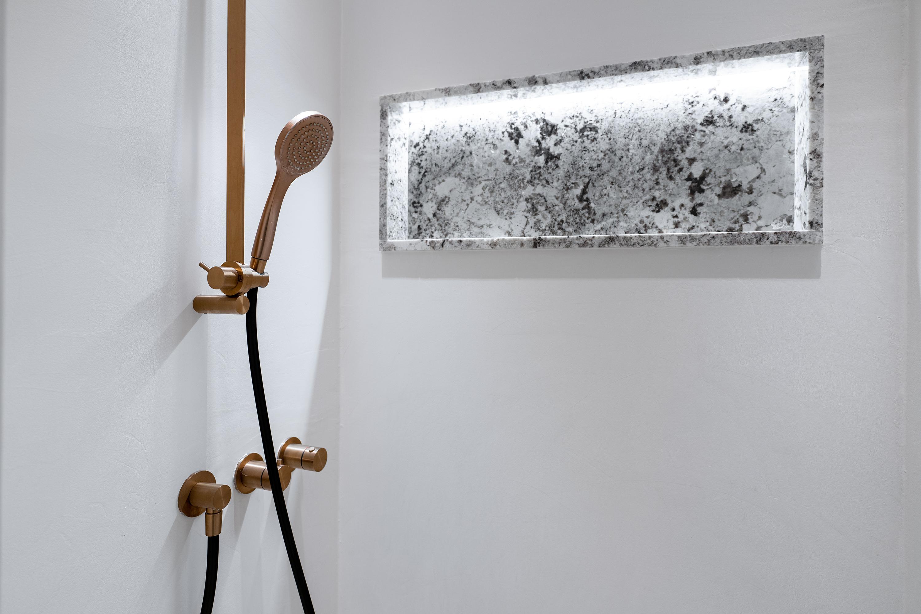 The master bedroom is situated at the front of the apartment on this floor. This spacious room has a large walk-in closet on both sides and a built-in dressing table. The master bedroom also has a luxury en-suite bathroom with a stand-alone bath, large rain shower, a double, natural-stone washbasin vanity unit and a shower-toilet.