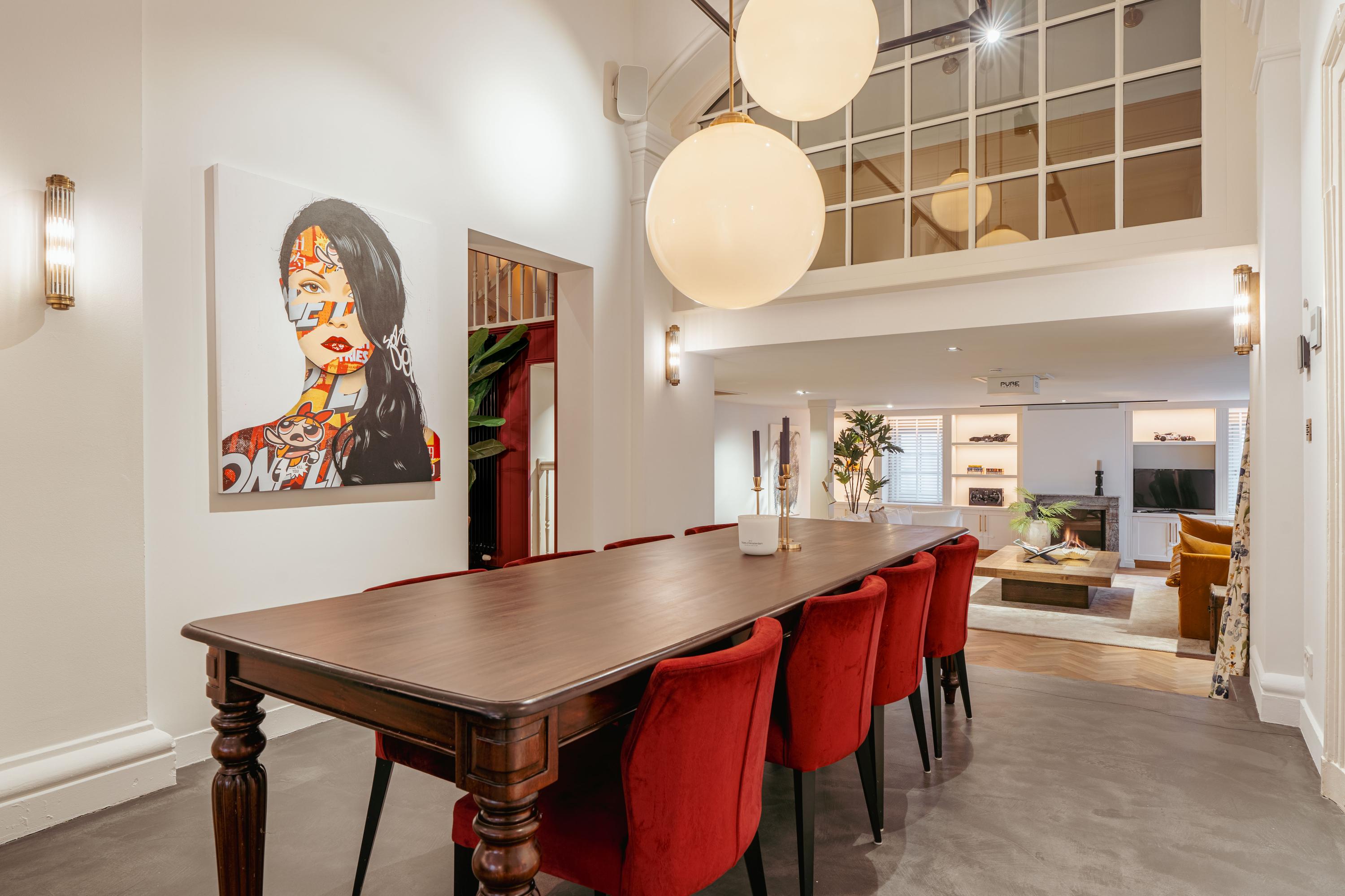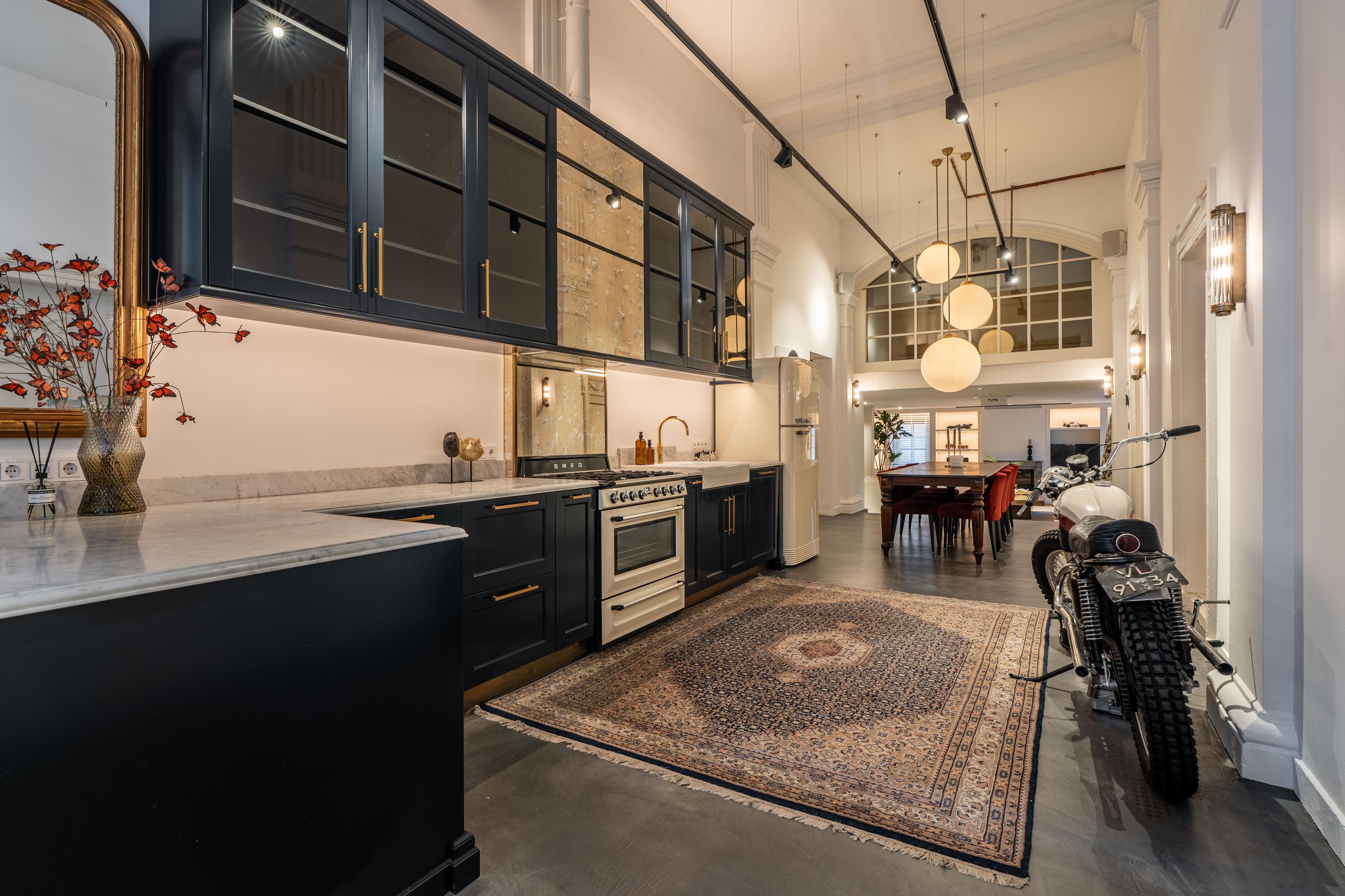 This duplex apartment Amsterdam Pijp district sits at Eerste van der Helststraat 1D, in one of Amsterdam’s most storied and lively quarters. Set across approximately 219 m², this ground-floor home has been meticulously renovated under architectural oversight, balancing historic context with discerning contemporary living. The property’s double-glazed windows, full wall and floor insulation, and Energy Class B rating provide modern efficiency, while original herringbone parquet and custom cabinetry invoke lasting craftsmanship.