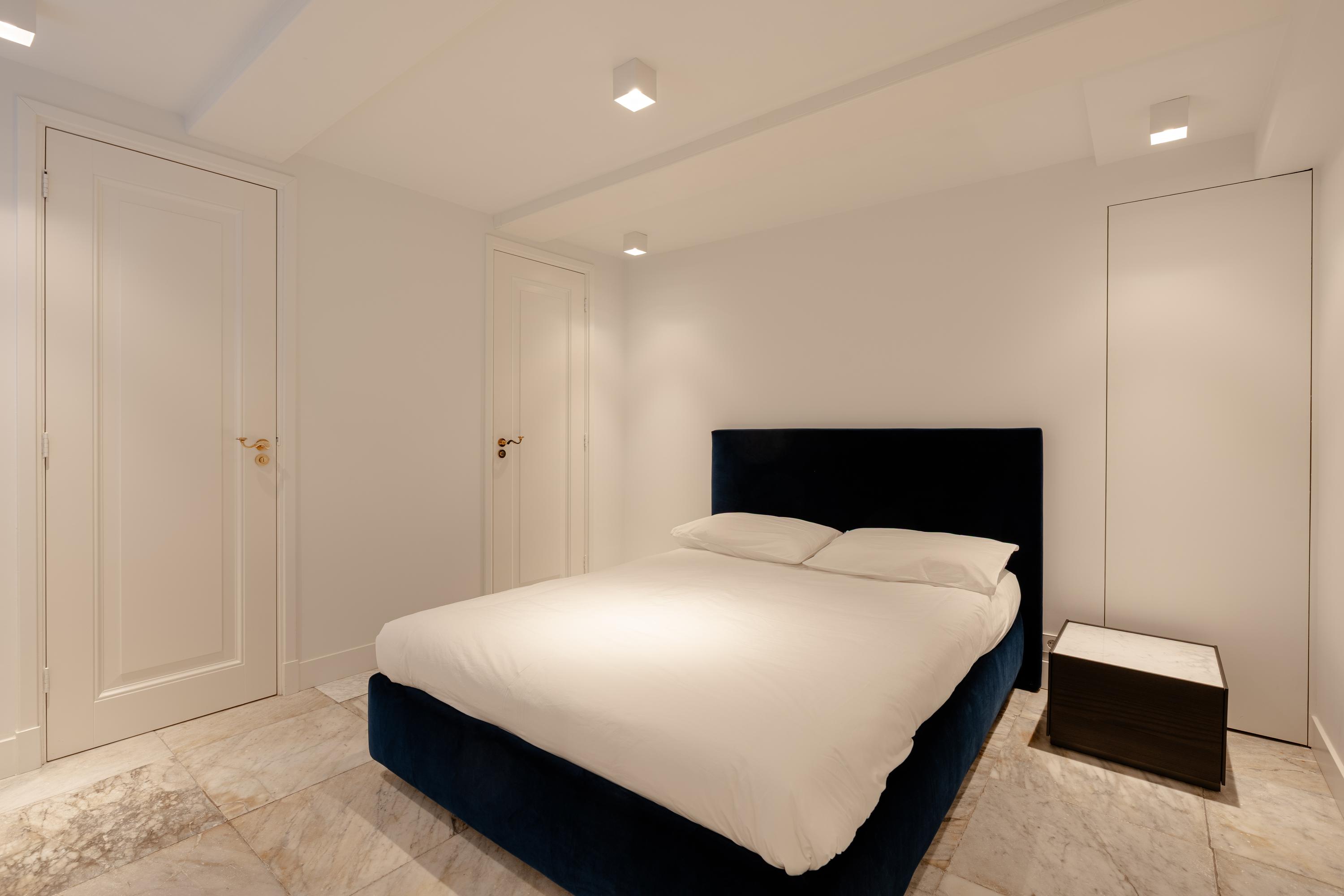 De tweede verdieping is ingericht als een comfortabele en luxueuze privésuite. Aan de achterzijde bevindt zich de badkamer, volledig uitgevoerd in Carrara marmer en voorzien van een strak badkamermeubel, inloopdouche, vloerverwarming, mechanische ventilatie en een separaat toilet.