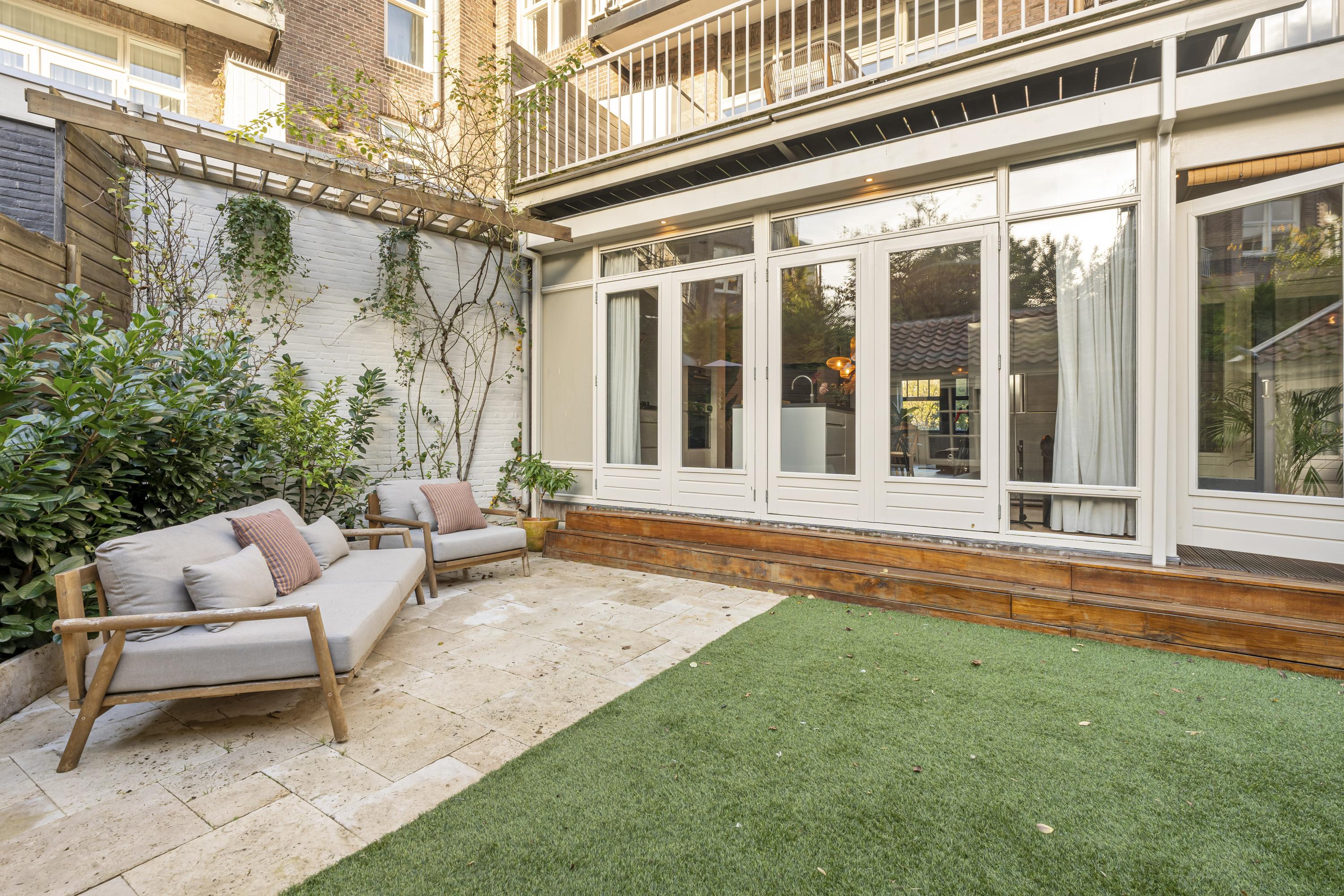 Spacious and charming ground-floor apartment (approx. 117 m²) with a sunny southwest-facing garden, ideally situated on the beautiful Merwedeplein in the highly sought-after Rivierenbuurt. The property features three bedrooms, a generous living room with a gas fireplace, and a large open-plan kitchen with a cooking island and direct access to the garden. Conveniently located within walking distance of shops, restaurants, green spaces, and various public transport connections.