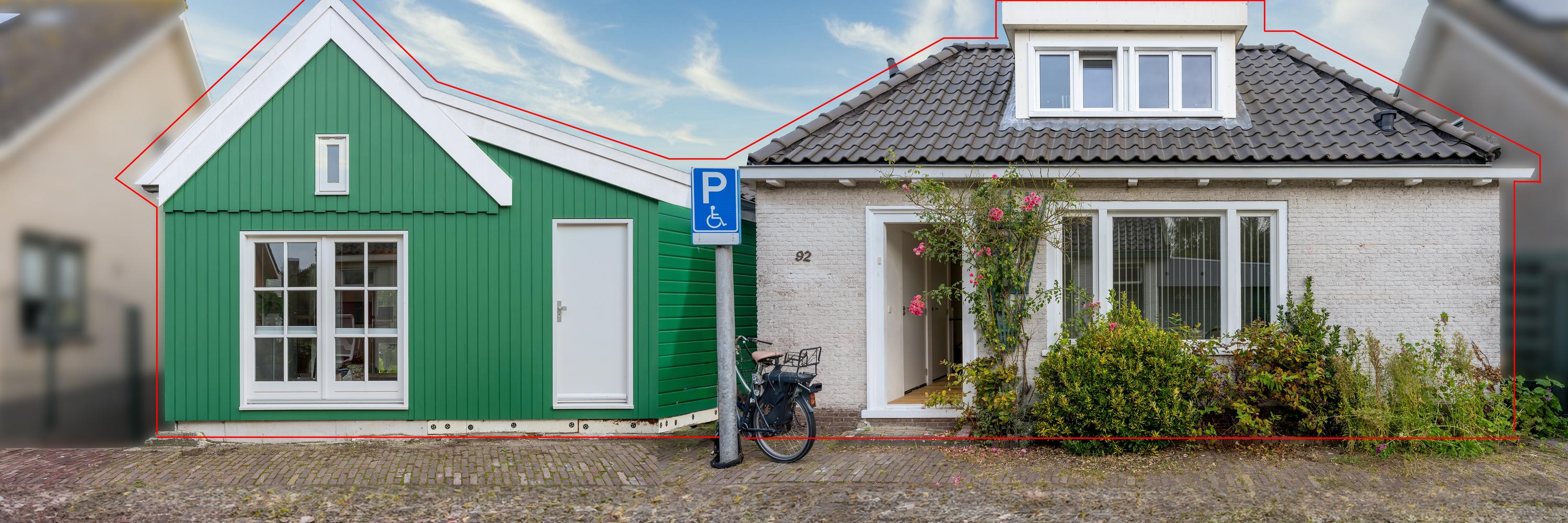 The Oostzanerdijk is a picturesque, village-style dike in a popular part of Amsterdam North. Situated along the dike, this unique detached home stands on an exceptionally wide plot. The property is a distinctive “fusion” design in which two architectural styles blend together beautifully. On the dike side, you’ll see a fresh green Zaan-style new-build house constructed alongside (and connected to) the original, renovated brick dike house. From the garden, it becomes clear that this is one spacious detached residence, with both sections connected at garden level across almost the full width of the plot.