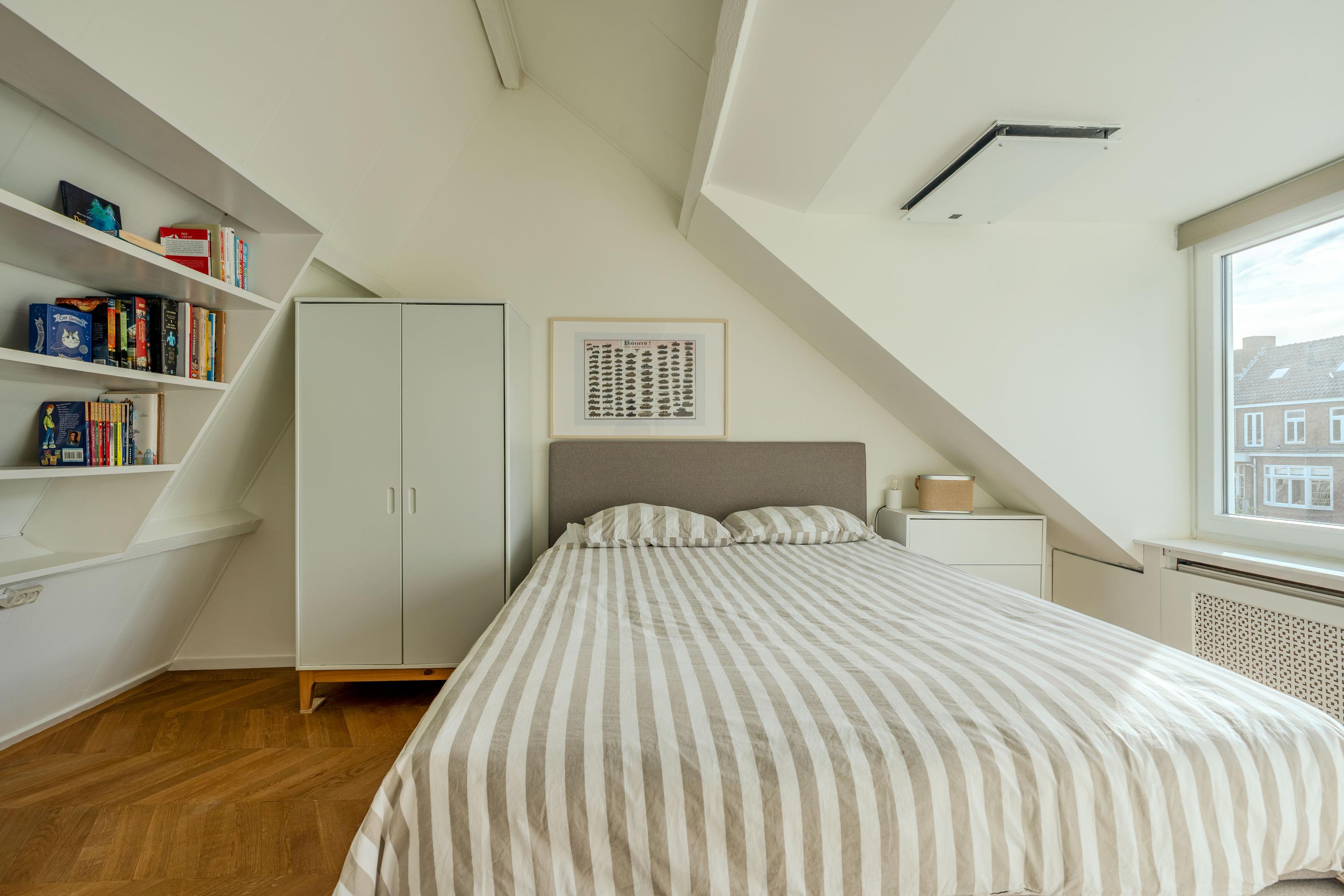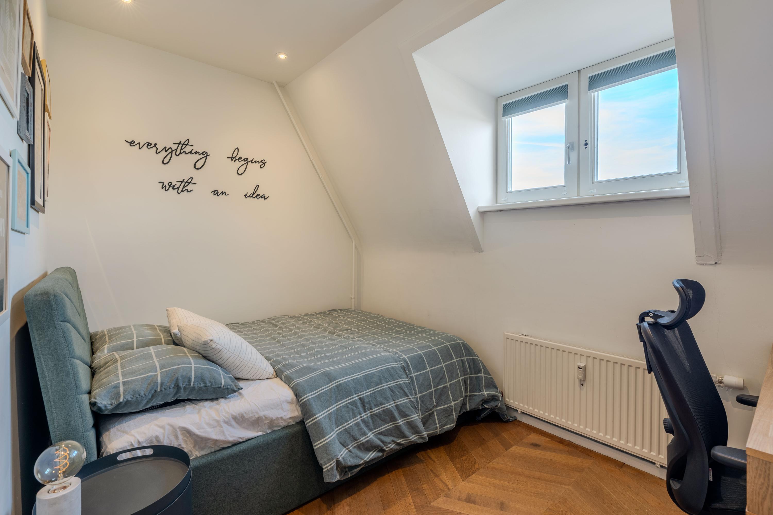 The top floor offers a third bedroom and a spacious bathroom with shower, sink, and toilet. The central open space can be used perfectly as a bedroom or hobby area, giving this floor a multifunctional character. This floor was renovated in 2023 and includes a newly installed dormer window.