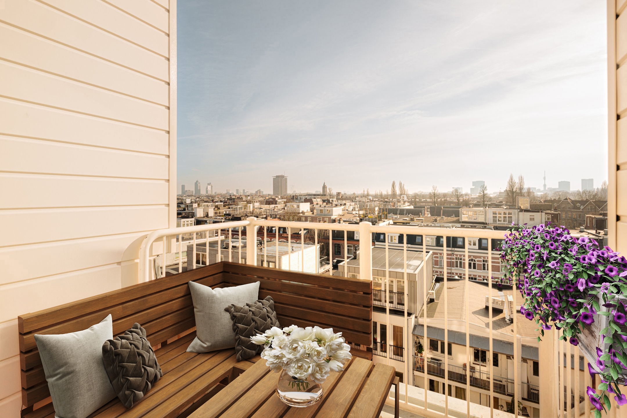 Experience modern living in a stylish and spacious apartment of approximately 148 m², situated in a prime location in Amsterdam Oud-Zuid. This luxurious apartment features a generous living area with an open kitchen, three bedrooms, and two south-facing balconies with a total area of approximately 8 m². The property is located on the fifth and top floor of an elegant building and can be accessed via a lift. The apartment offers breathtaking views of the city from both sides. Additionally, it is situated on freehold land and has an energy label A. There are also two separate storage rooms in the basement.