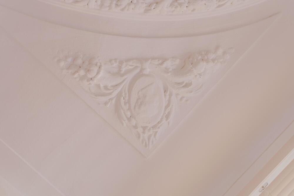 From the spacious hallway, you have access to the generous living room located at the front of the apartment. The living room boasts high ceilings with beautiful detailing and large windows; the first bedroom is en-suite. This bedroom, situated at the rear of the property, is accessible via built-in sliding doors from the living room and offers access to a deep balcony of approx. 7 m², facing south-east. The kitchen, also located at the rear, is fitted with luxury built-in appliances including a five-burner gas hob with extractor fan, a wide oven, fridge/freezer combination, and dishwasher. Electric shutters are installed along the entire rear side of the apartment. Adjacent to the kitchen is a separate toilet with washbasin and a convenient storage room.