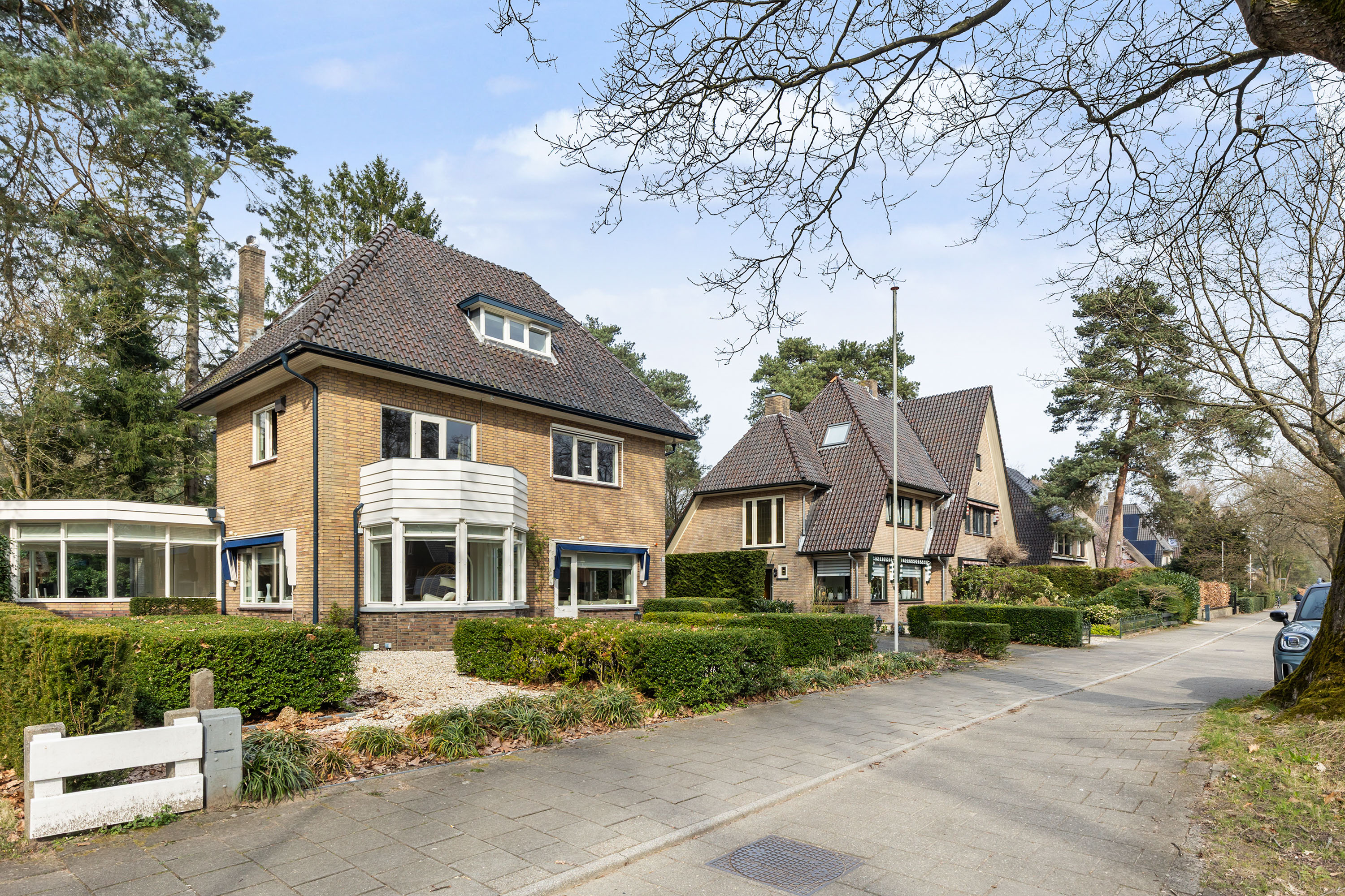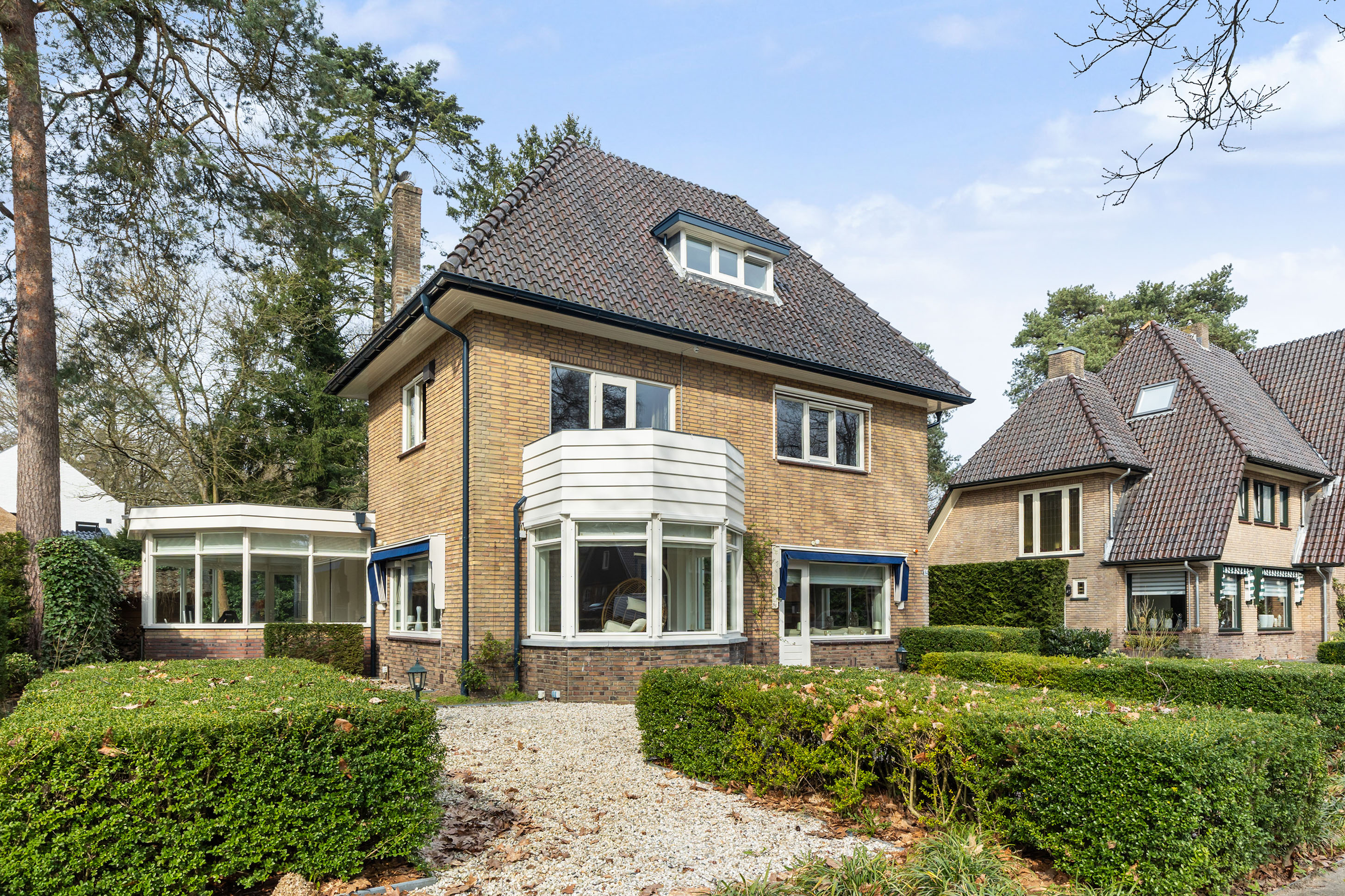 Situated on the edge of the sought-after Berg en Bos residential area, this villa has been built in classic 1930s architectural style, seamlessly combined with contemporary comfort and high-quality finishes. With a living area of approximately 255 m², two conservatories, a balcony and roof terrace, a garage and generous on-site parking, the property offers a highly complete and versatile living environment.