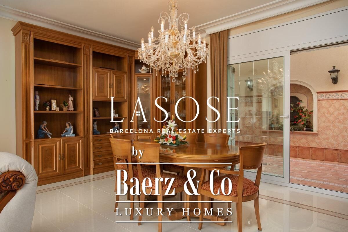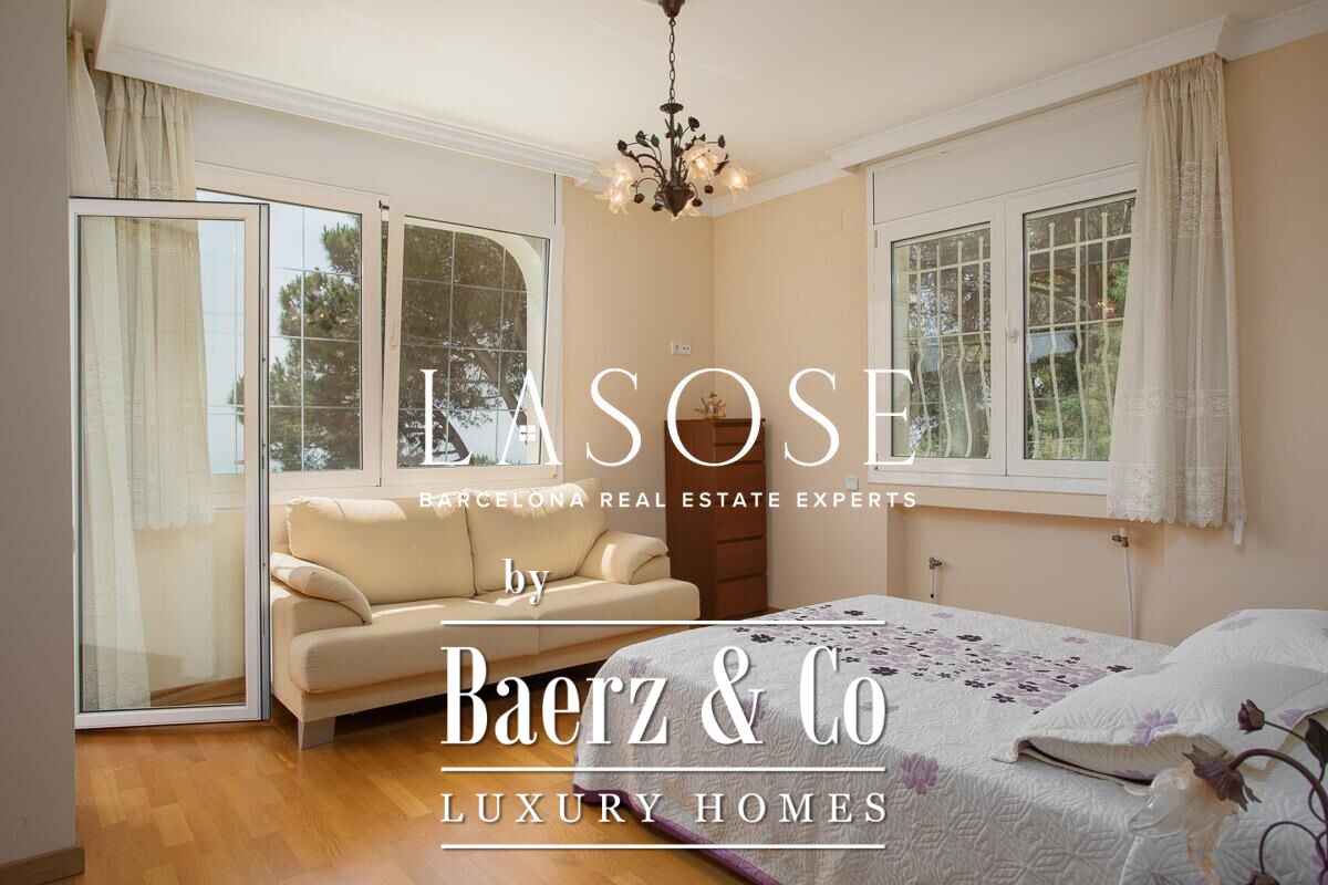 Spread across four elevator-connected levels, the villa’s architecture is measured, light-filled, and designed for effortless indoor-outdoor flow. The living areas are anchored by elegant marble floors and a fireplace, opening to generous terraces and a level garden, all framing exceptional views that reach the Barcelona skyline on clear days. Five bedrooms and five bathrooms allow for private retreat, while two fully equipped kitchens enhance flexibility. The private library, large pantry, and dedicated storage spaces add utility without sacrificing poise.