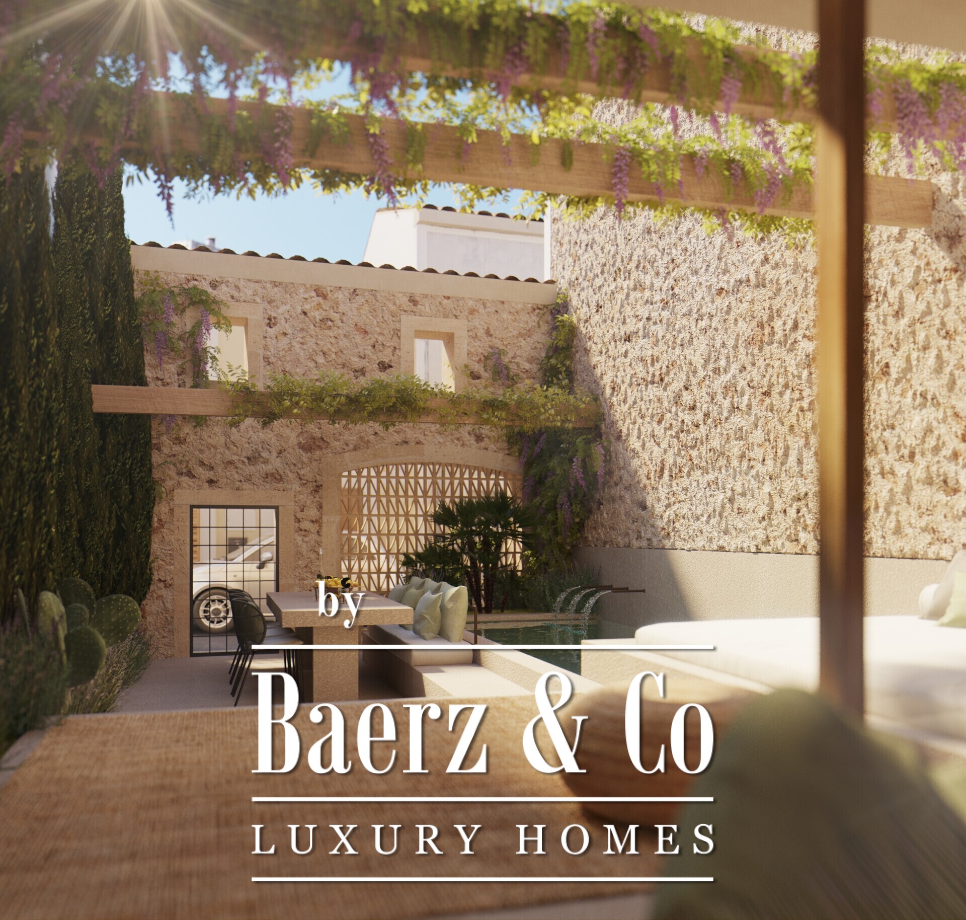 Townhouse Artà stands in the heart of the village, uniting Mallorcan tradition with modern comfort across 246 m² of considered living space. This three-storey residence welcomes you with a patio opening to a tranquil pool and inviting terrace, offering a discreet sanctuary. On the ground level, a luminous living room interacts fluidly with the open kitchen and dining area, designed for effortless entertaining. A guest toilet completes this floor with functional ease.