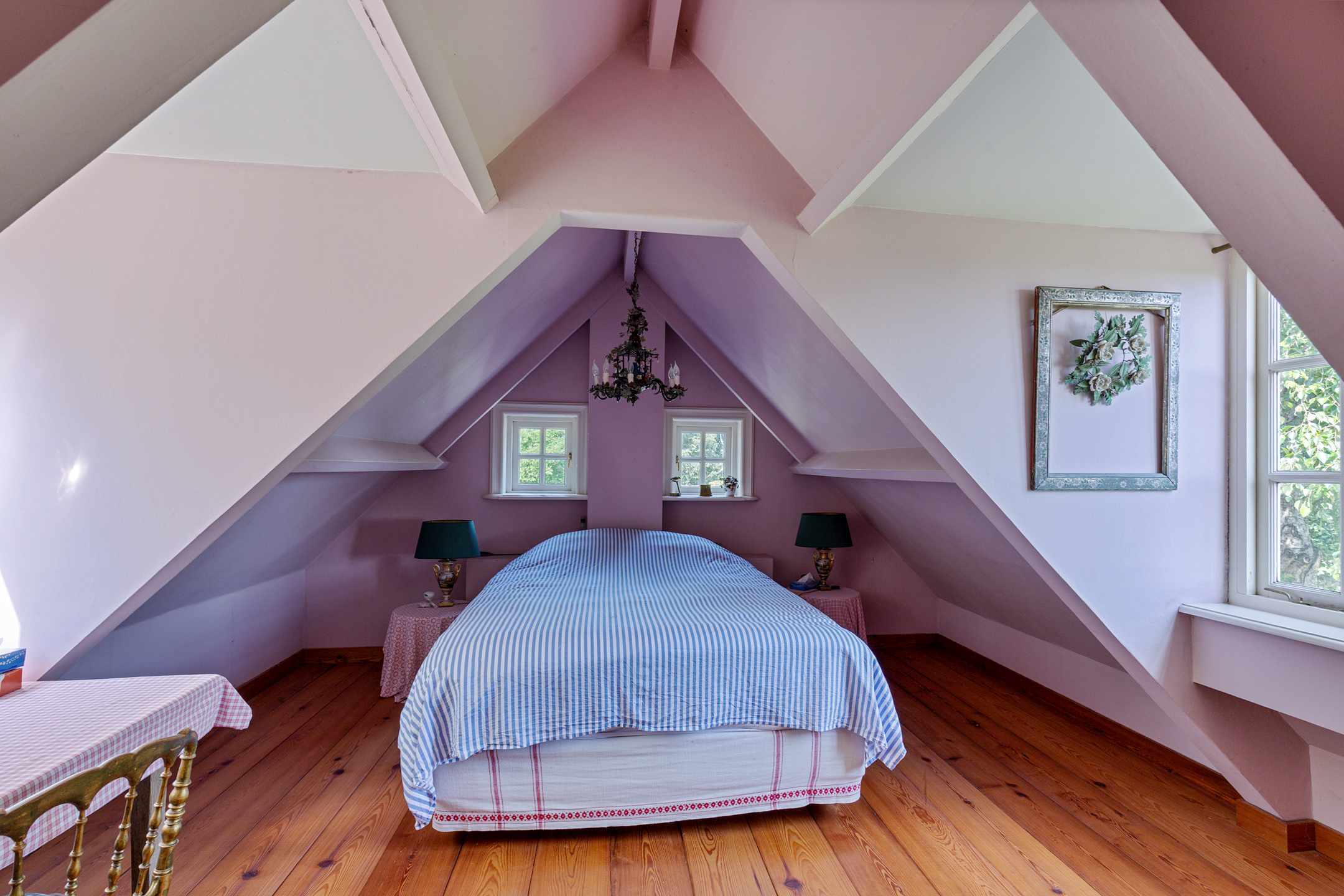Upstairs, there are two bedrooms.