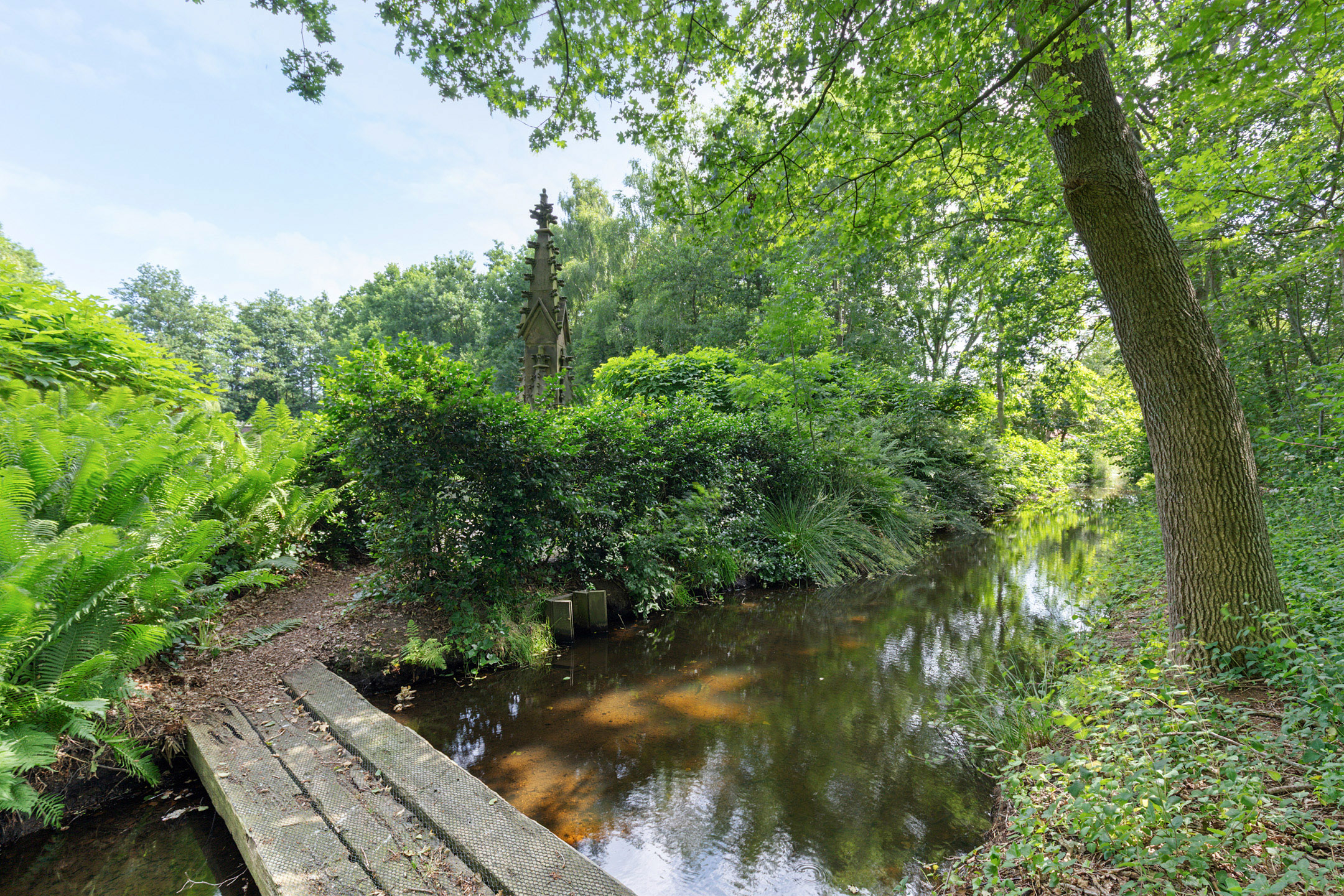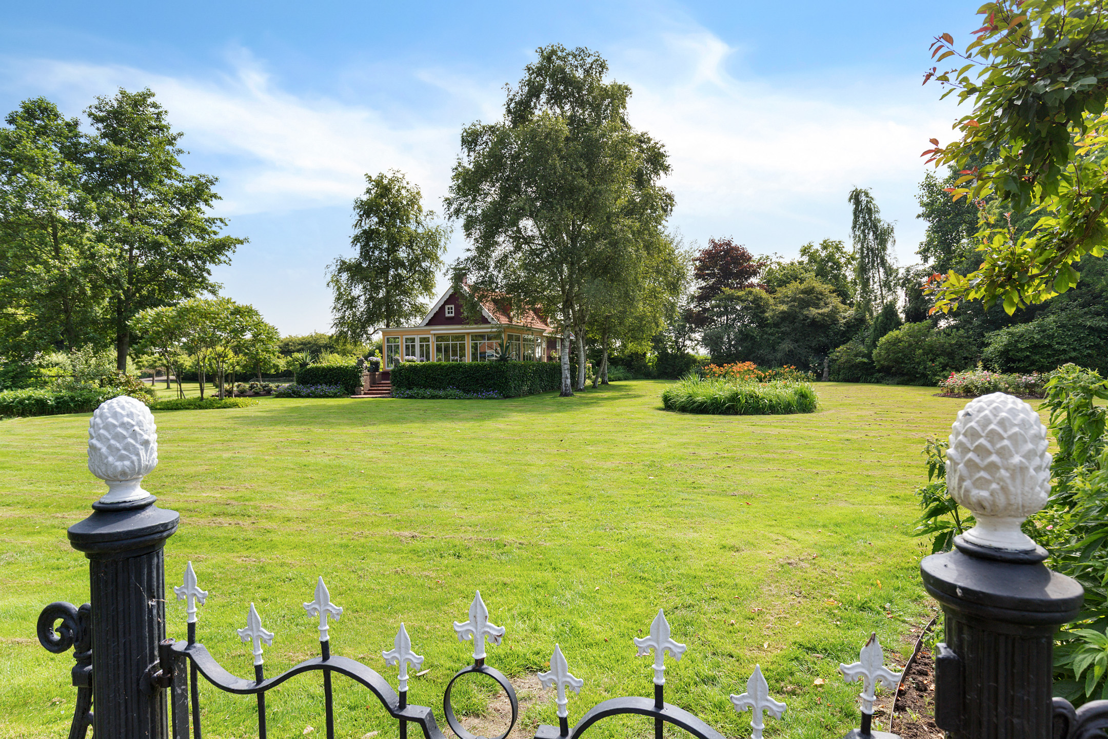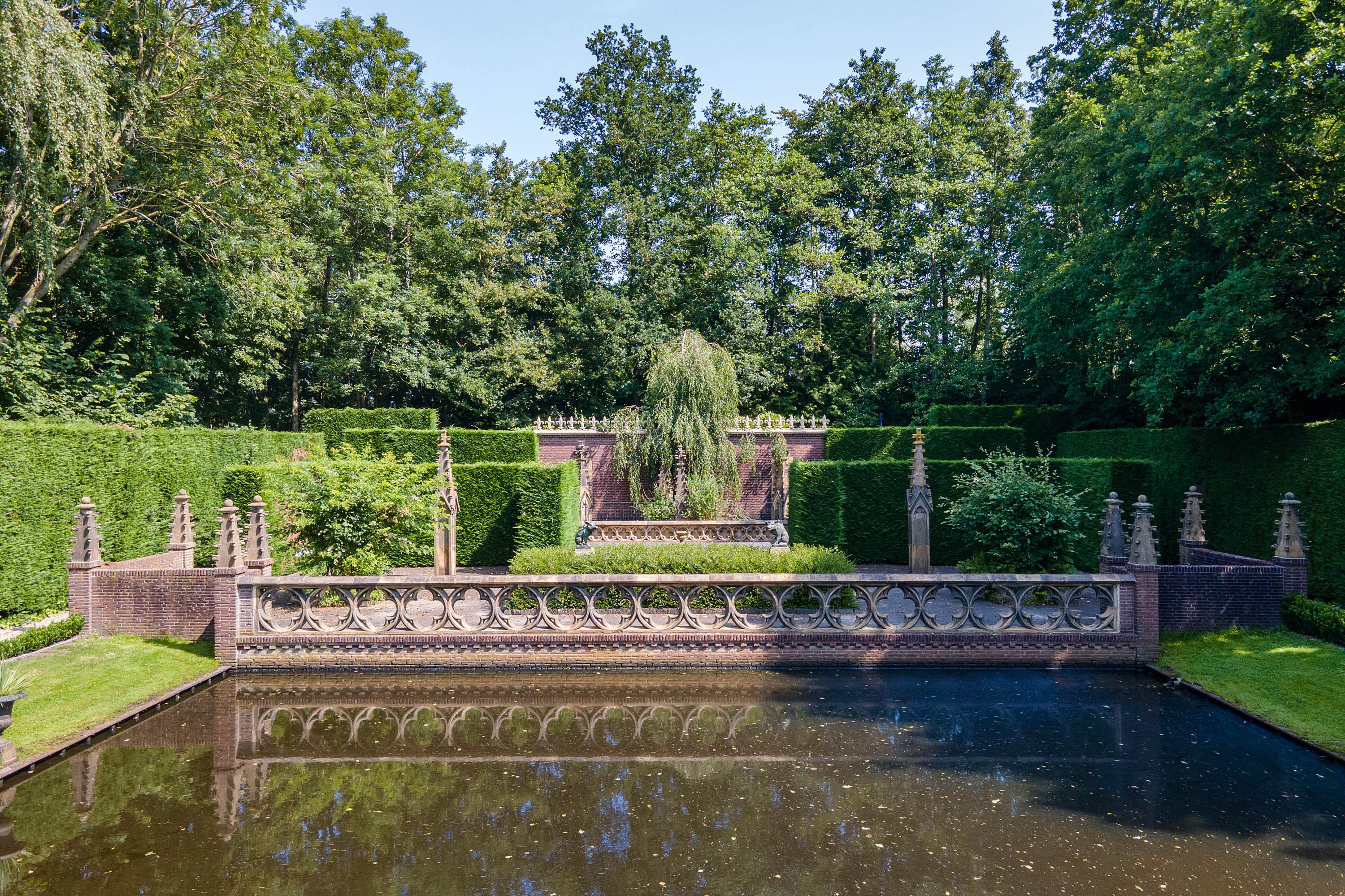 What began as a plot of approximately 1,600 m² has grown into a remarkable estate of approximately 3.18 hectares. The gardens were carefully designed to combine formal and natural elements, including two (swimming) ponds, multiple terraces, garden houses, a conservatory with vegetable garden, wooded areas, and expansive lawns.