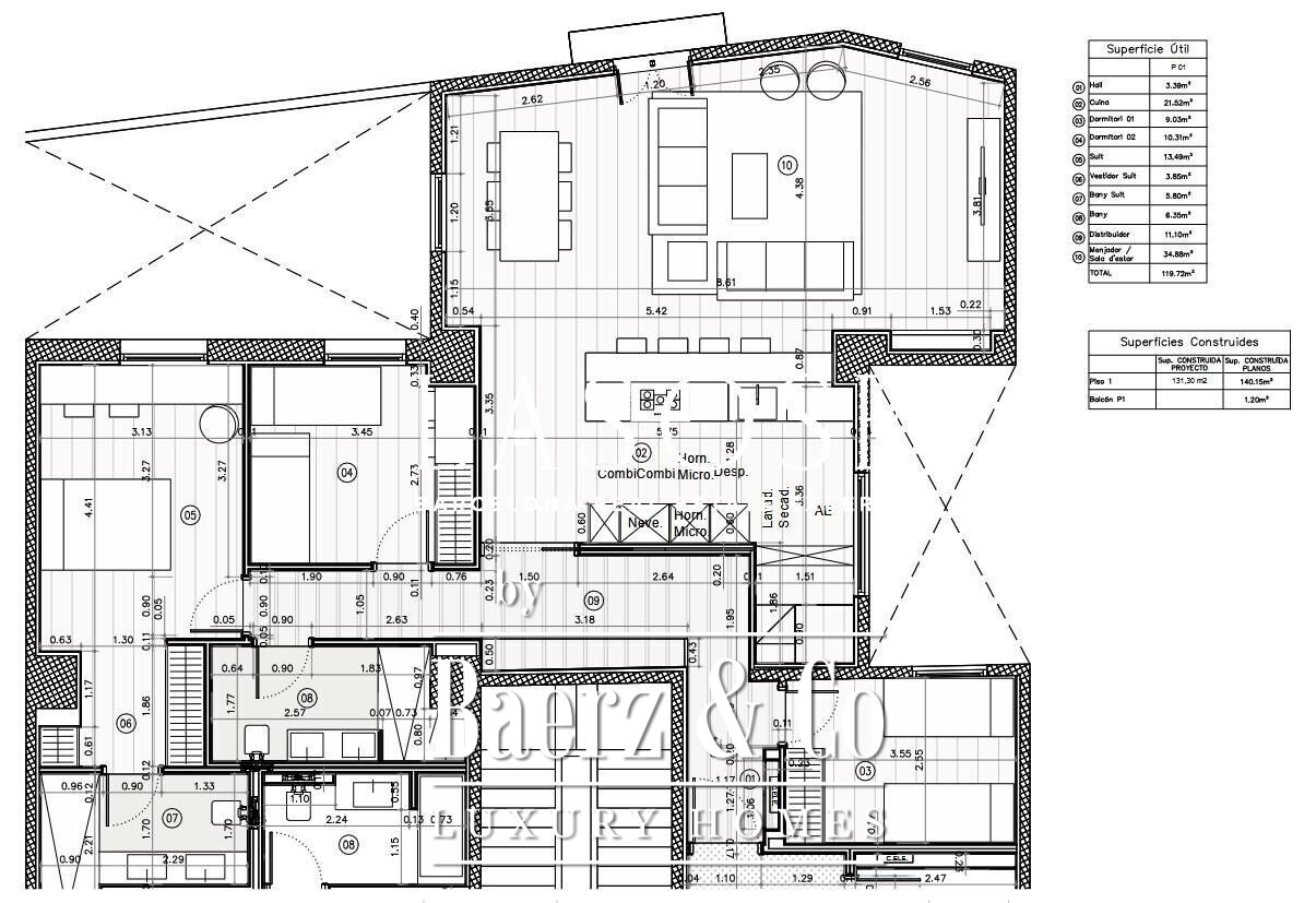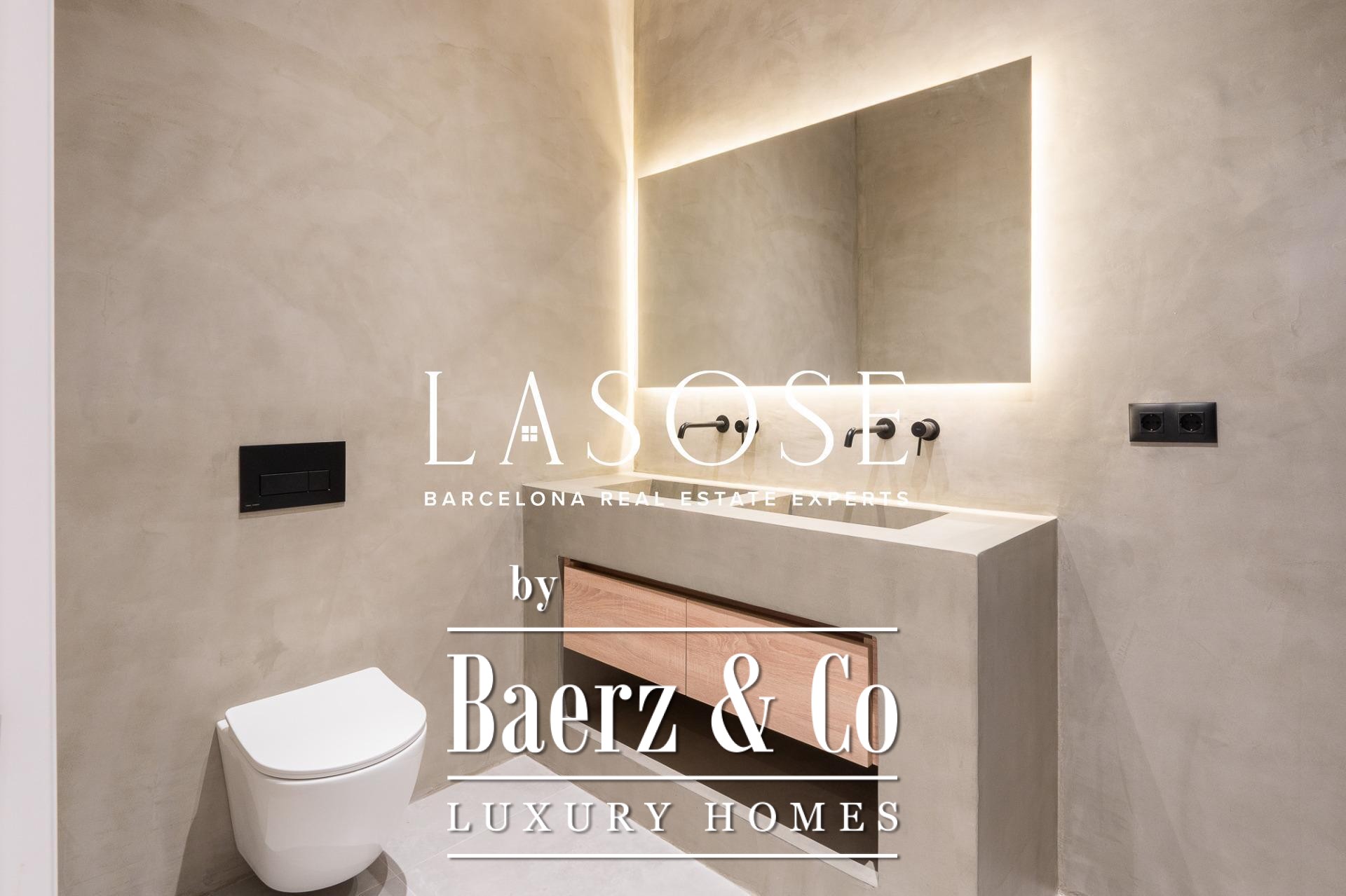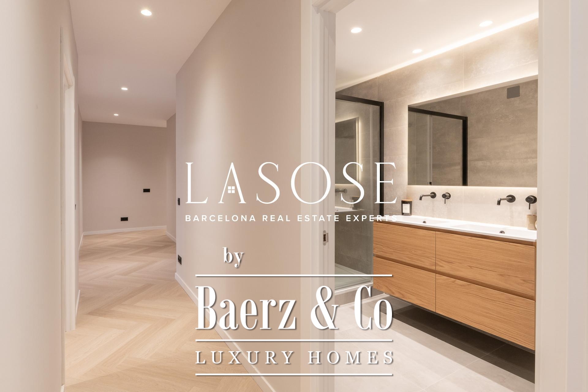 Three bedrooms, including a master suite with private bathroom and separate dressing room, are complemented by fitted wardrobes and custom carpentry. Comfort is assured through aerothermal air conditioning and double-glazed wooden windows. Residents benefit from the convenience of an elevator, concierge service, video intercom, and secure armored door. The long-tail variation luxury apartment for sale in Barcelona is well-suited for those who value discretion and design.