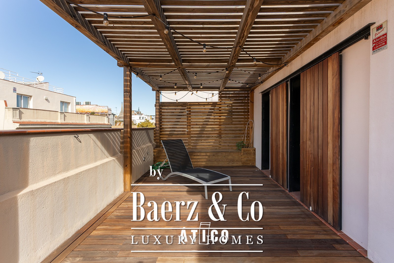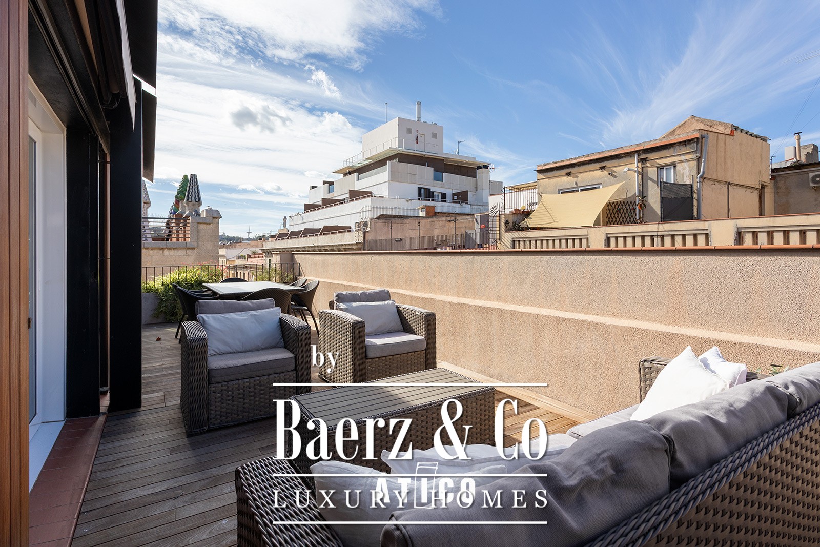 Next to Palau Guell, we have this furnished penthouse with a spectacular 80 m terrace, offering unique views and all the necessary furniture to enjoy and relax, having breakfast, and perfect for summer dinners.