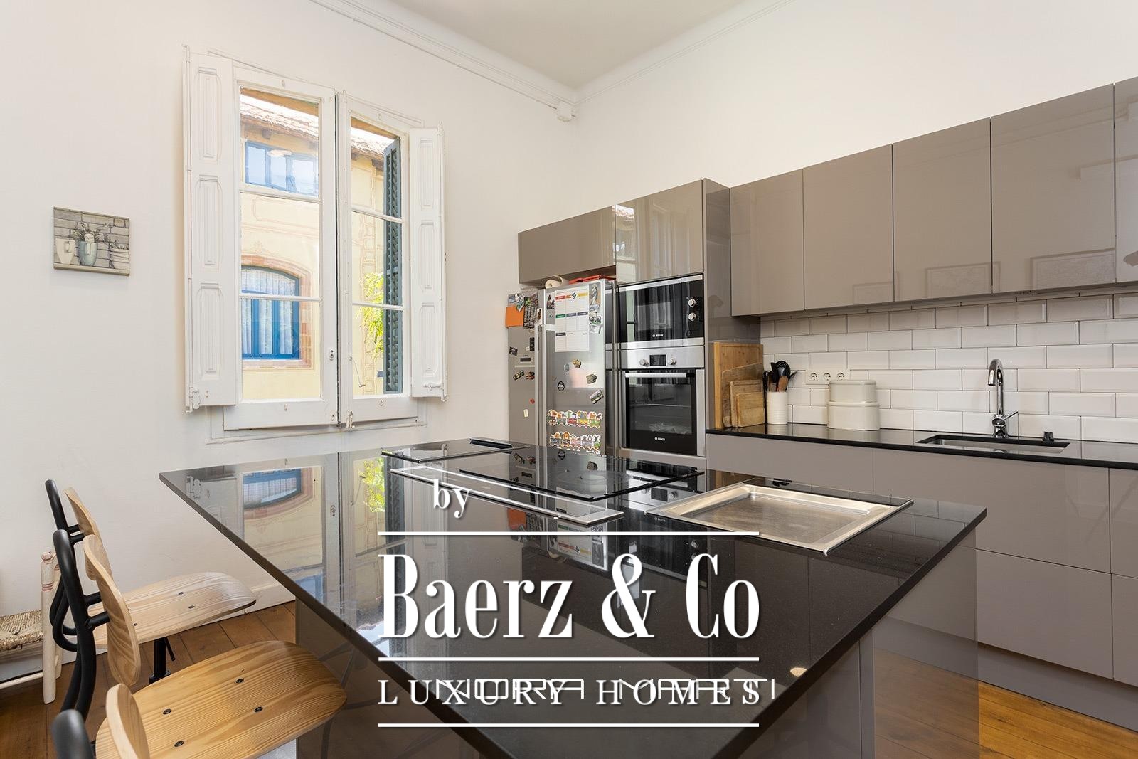 Apartment Barcelona is available for temporary rental in the sought-after Bonanova neighborhood. This unfurnished residence, measuring 180 square meters, offers a luminous and sun-filled ambiance enhanced by dual balconies—one overlooking the sea and another leading directly to the communal garden and pool. Rooted in a preserved 1930s Modernist villa, the property combines an authentic historical atmosphere with contemporary amenities.