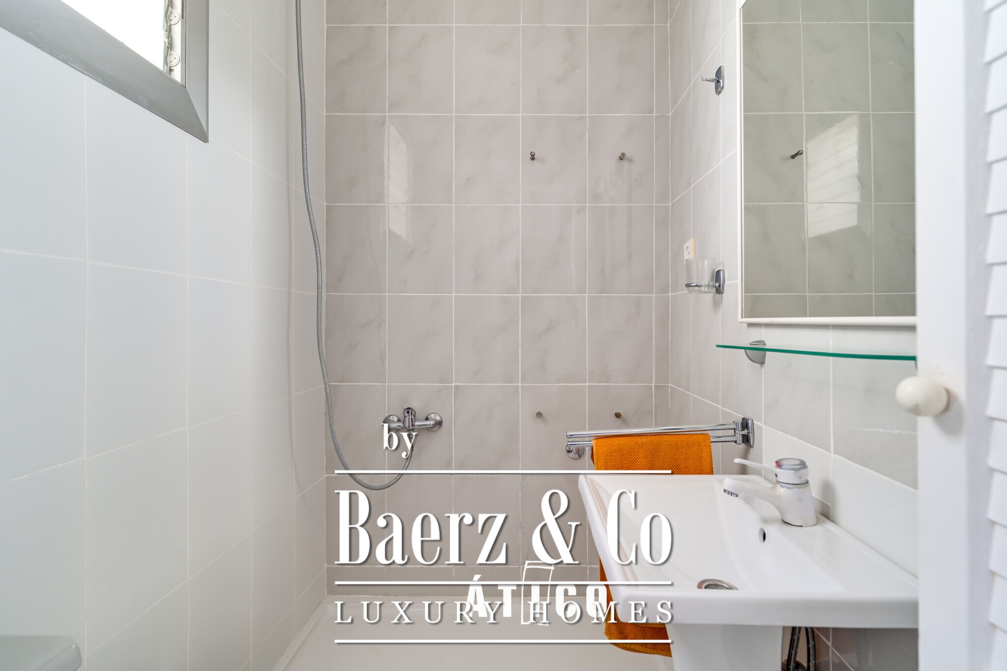 The penthouse’s layout is designed for daily comfort. The living area welcomes with an open-plan living room and integrated kitchen, bright and purposeful, leading directly to the terrace. A small study offers space for work or quiet contemplation, with the possibility of integration into the living space for greater openness.