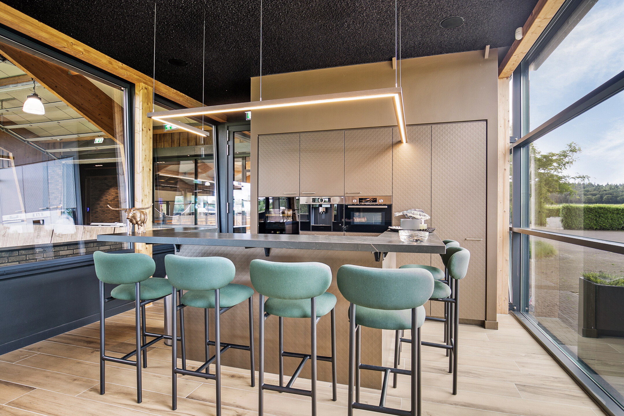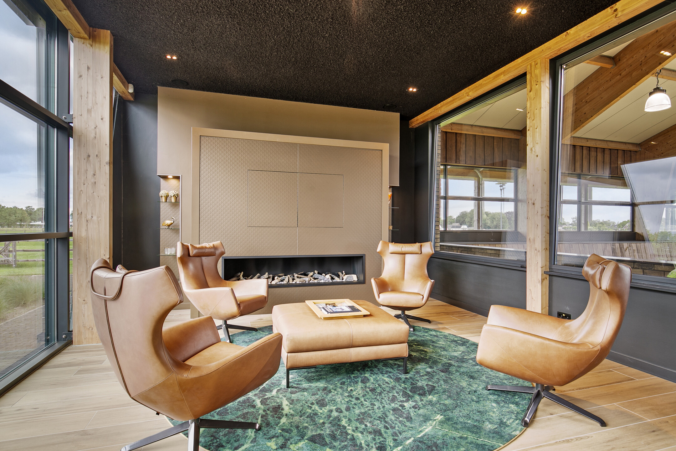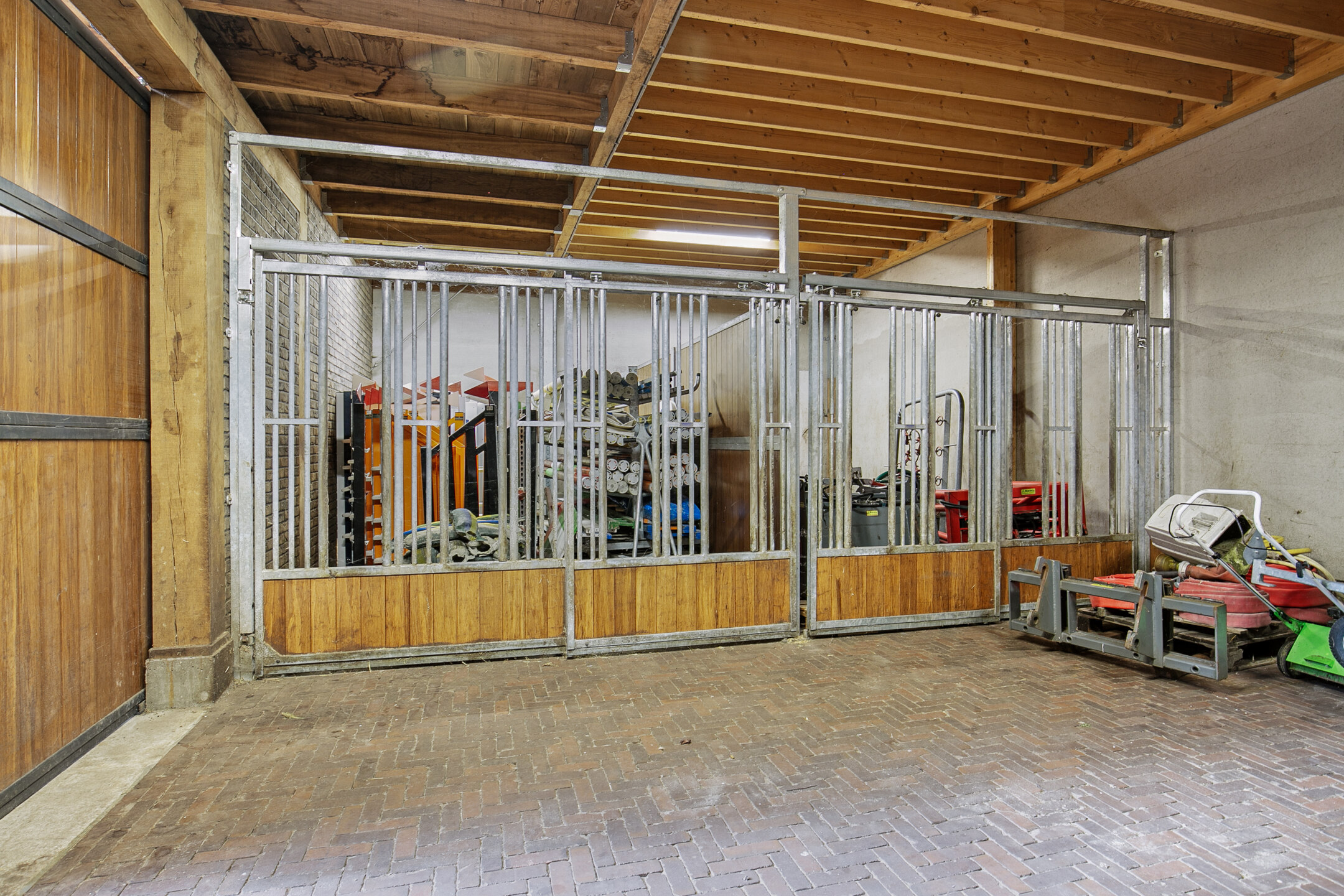 The luxurious reception area offers a beautiful view over the indoor arena through large windows, as well as over the outdoor area with the outdoor arena, lunging circle, horse walker and paddocks. A complete overview! The reception area is accessible from the outdoor arena from the elevated terrace and equipped with a tiled floor with underfloor heating and furnished with a complete bar and a gas fireplace. The bar is equipped with a sink, a dishwasher, coffee machine, combination oven/microwave and a wine fridge. The large exterior windows have electrically operated screens and the acoustic ceiling has recessed lighting. From the reception area, there is direct access to the riding hall with indoor arena. The arena measures approx. 20x40 metres and is fitted with fine wooden rafters and a hardwood arena surround. This arena edge fence can be opened automatically from the stable area, giving direct access to the arena. There is an Equisport ebb and flow floor. The entire end wall consists of imposing windows and the side wall also has plenty of windows. The insulated roof is also equipped with a wide skylight in the ridge. A portal connects the indoor arena and reception area with a toilet room and the multi-purpose room on the 1st floor. The porch has a tiled floor, stucco walls and a stucco ceiling. There is a fixed sink with a cabinet and a storage cupboard offers plenty of storage space. The fully tiled toilet room is equipped with a floating toilet and urinal. The multi-purpose room on the first floor is finished with a PVC floor, stucco walls and a ceiling of insulation panels. Here, too, room-high windows in the rear façade offer a nice view of the outdoor arena, paddocks and other facilities. Next to the indoor arena is a spacious technical room. This is where the sprinkler system, the ebb and flow system, the central heating combi boilers, the unit for the solar panels and the floor heating, as well as the meter cupboard are located.The beautifully finished stable area exudes ambiance and warmth due to the frequent use of wood. The stable is equipped with 12 horse stalls, 2 washing rooms, a tack room, canteen, a laundry room and a toilet room. At the rear of the stable area is a large storage and stabling area, where there are also 2 rearing stalls and a fixed staircase provides access to the attic and mezzanine above the stalls. The horse boxes (approx. 3.50x3.50 m) are fitted with partly hardwood, partly stainless steel and partly powder-coated and lowered front walls with hinged doors. All stalls have an outside hatch. The washing areas are finished with a rubber floor and fully tiled walls. There is also a solarium.The stable area has a floor of baked bricks, wooden rafters and an insulated roof. A large skylight has been installed in the ridge of the roof. Large, translucent roller doors provide access to the surrounding yard. The tack room is furnished with custom-made cupboards, saddle supports and a sink. The room is finished with a tiled floor and panelled walls. The canteen has a tiled floor, wallpapered walls and a wooden beam ceiling. The canteen has kitchen equipment, which is equipped with a sink, fridge and dishwasher. The partly tiled toilet room is equipped with a floating toilet and a hand basin. The laundry room has connections for washing equipment and the installation of the solar panels. The room is finished with a tiled floor. The storage and stabling area is accessible from the stable area through sliding doors and also offers space for 2 rearing stables. A fixed staircase provides access to the attic space and mezzanine on the 1st floor. The rearing stables are equipped with partly hardwood, partly galvanised front and partition walls. The loft area is equipped with fixed cupboards with plenty of storage space and the flybuster system. The attic is finished with a wooden floor.