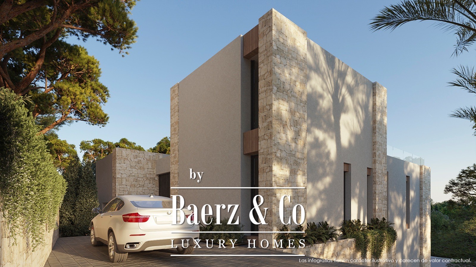 Located in a quiet cul-de-sac in the exclusive San Jaime urbanization in Benissa, this project offers sea views and enviable tranquility, allowing residents to enjoy their privacy amidst an idyllic setting. The charming environment not only provides natural beauty but also proximity to essential and recreational spots. The renowned San Jaime golf course is just a stone's throw away, while the well-known supermarket Pepe La Sal caters to all your daily needs. This remarkable villa is designed over three elegant floors, achieving a perfect balance between style, comfort, and functionality. - ENTRY FLOOR: Upon entering, you are greeted by an area with the garage, laundry room, and technical room. This thoughtfully designed space ensures that practical aspects of life are seamlessly integrated without compromising on style. - GROUND FLOOR: As you proceed to the living room, you are enveloped in a world of elegance and comfort. The open living/dining/kitchen area exudes a welcoming atmosphere, ideal for family gatherings or entertaining guests. Additionally, this floor features two spacious
