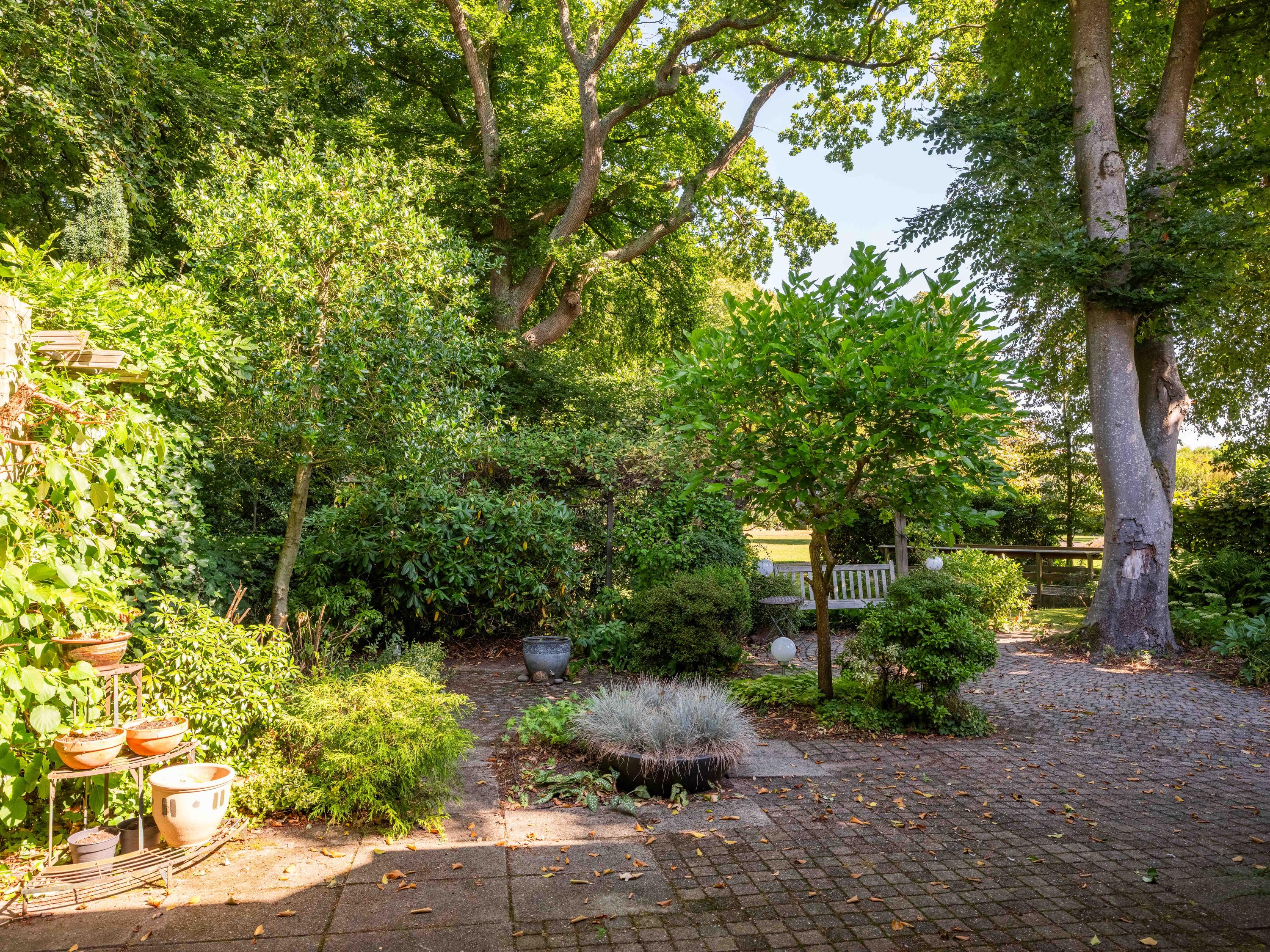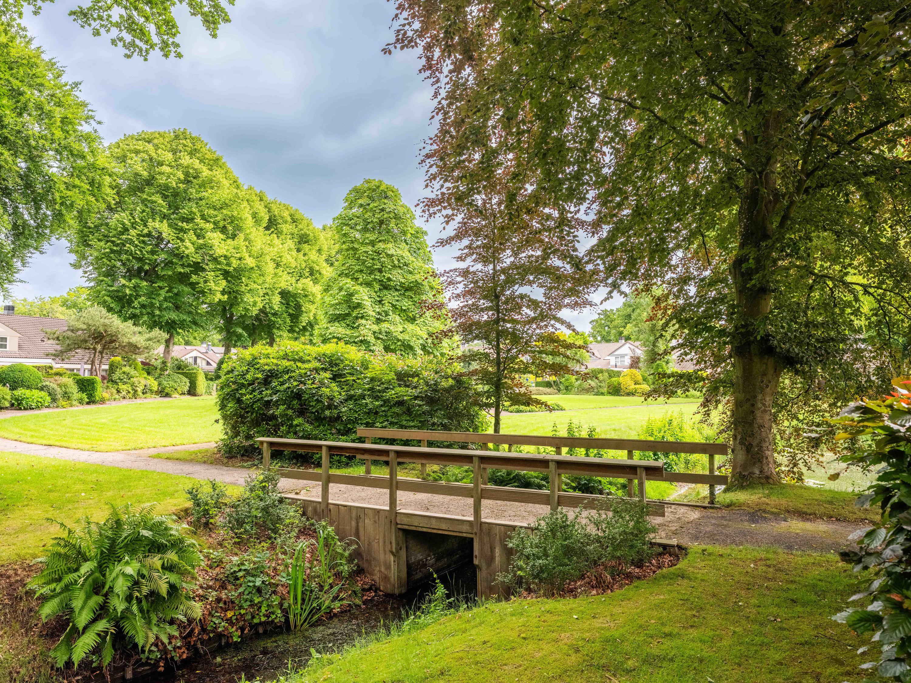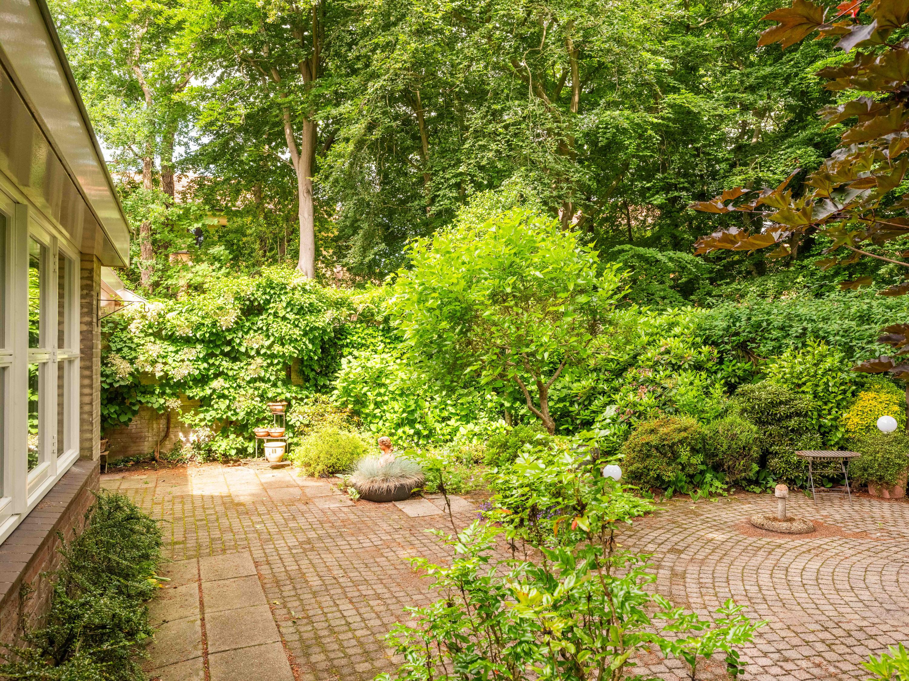 Through the large sliding doors, you step into the sunny, sheltered backyard, a wonderful place to enjoy peace and privacy, with a terrace and a view of the pond. The beautifully landscaped, sunny garden is an oasis of peace and privacy. The terrace borders the exclusive, communal park with ponds – a unique place where you can enjoy nature to the fullest. The park is exclusively accessible to local residents.