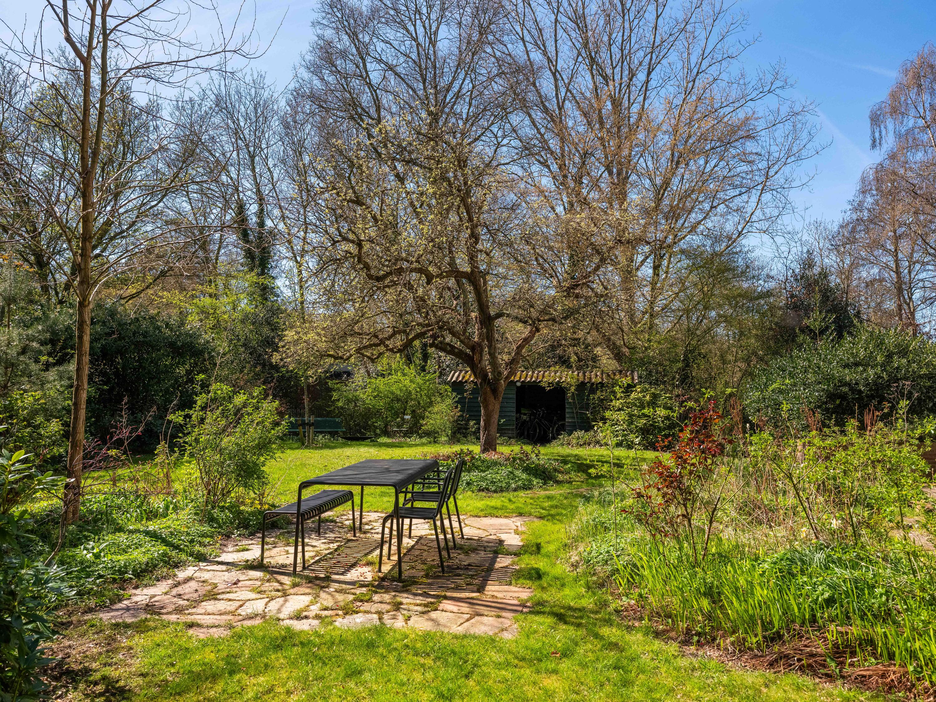 The lovely green garden offers all the privacy you could wish for and has been landscaped according to ecological principles. The impressive pear tree is a real eye-catcher. Various other fruit trees have also been planted. In the garden, there is also a practical workshop shed and a garage/carport for even more storage, parking or hobbies. On-site parking is easily available, and there is also a charging point for electric vehicles.