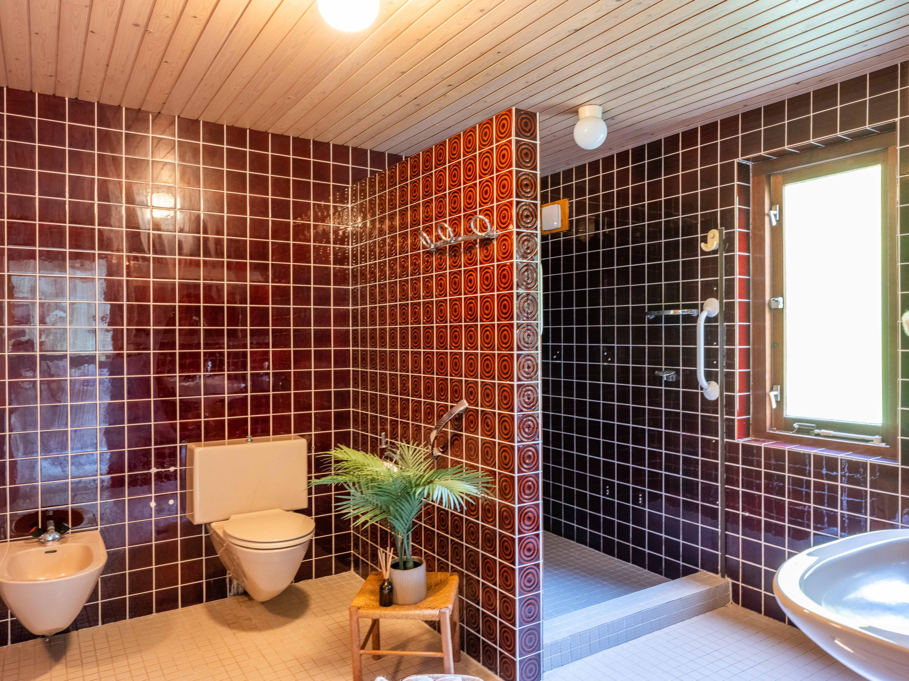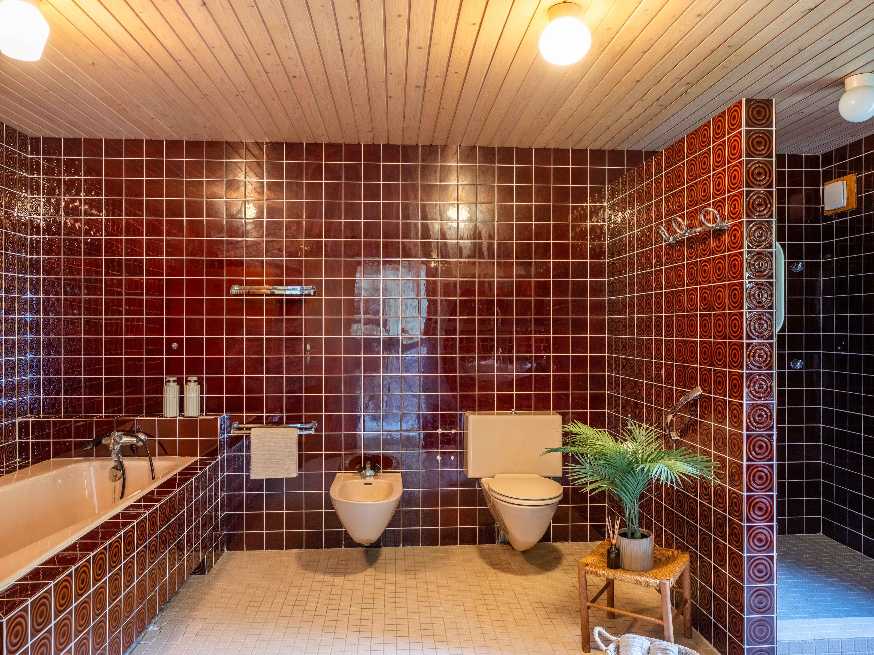 We would also like to mention a few extras. The large attached garage is accessible from inside and offers ample space for bicycles, cars or other items. Cars can also be easily parked on the property, as there is plenty of space. The garden has several terraces and offers plenty of sun and privacy. It has taken 43 years to turn it into a colourful whole. And there is a greenhouse! The surrounding garden offers plenty of sun and privacy. In terms of sustainability, we can report that there are already 8 solar panels, wall insulation and mostly double glazing (energy label C). The wine cellar is also a charming extra.
