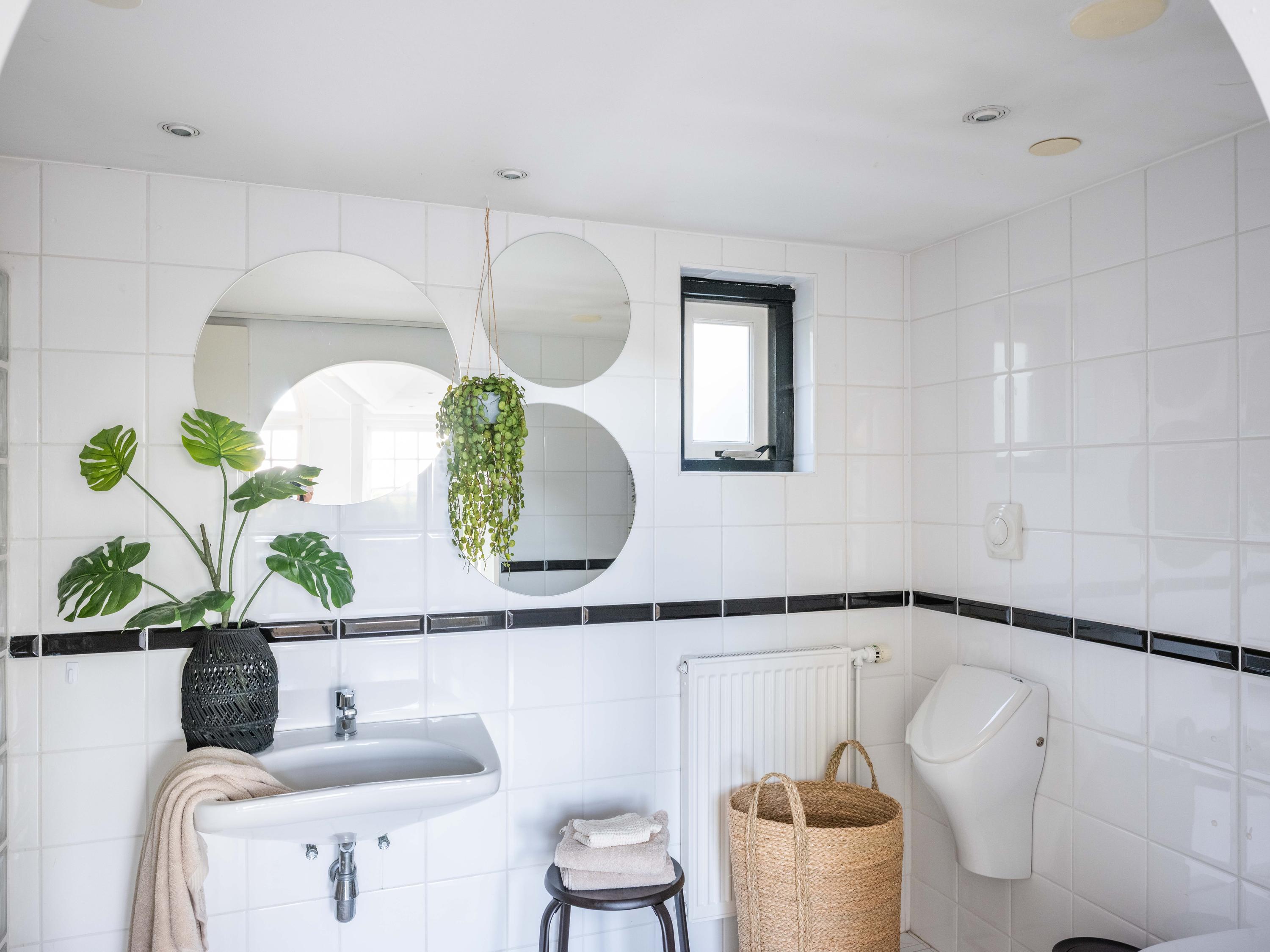 The deep front garden, brings us to the entrance of the house. Upon entering we enter the hall with immediately to the left a bedroom with private bathroom (ground floor living is thus possible here). The bathroom is equipped with a walk-in shower, sink, toilet and urinal. Back in the hall we find behind a wall a room that is now used as an office/guest room. Here is also located the toilet and an additional shower stall.