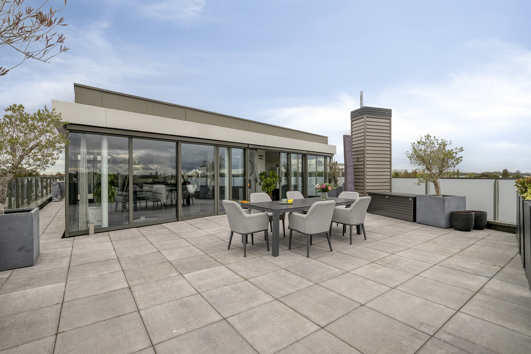 Stop searching! This stunning penthouse combines comfort, luxury, and breathtaking views over the skylines of Rotterdam, Delft, and towards The Hague. The property offers approximately 143 m² of living space, a sunny rooftop terrace of approximately 112 m², two indoor parking spaces, and is located in the heart of Bergschenhoek, with excellent connections to the A12, A13, and A16 highways.