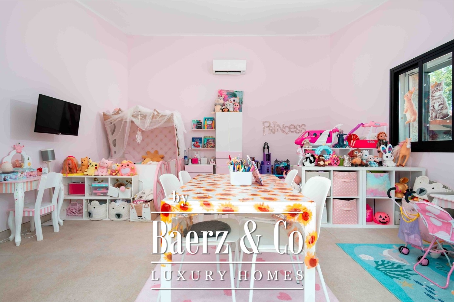 Set within an 11,000 m2 plot, the estate features panoramic views of the Tramuntana mountains and a seamless indoor-outdoor connection. Mediterranean light fills each room, while the grounds invite leisurely days beside the 12 × 6 m saltwater pool or evenings in the al fresco kitchen equipped with barbecue and pizza oven. Lush gardens with twelve varieties of fruit trees and an automated irrigation system surround the terraces, creating an atmosphere of cultivated ease.