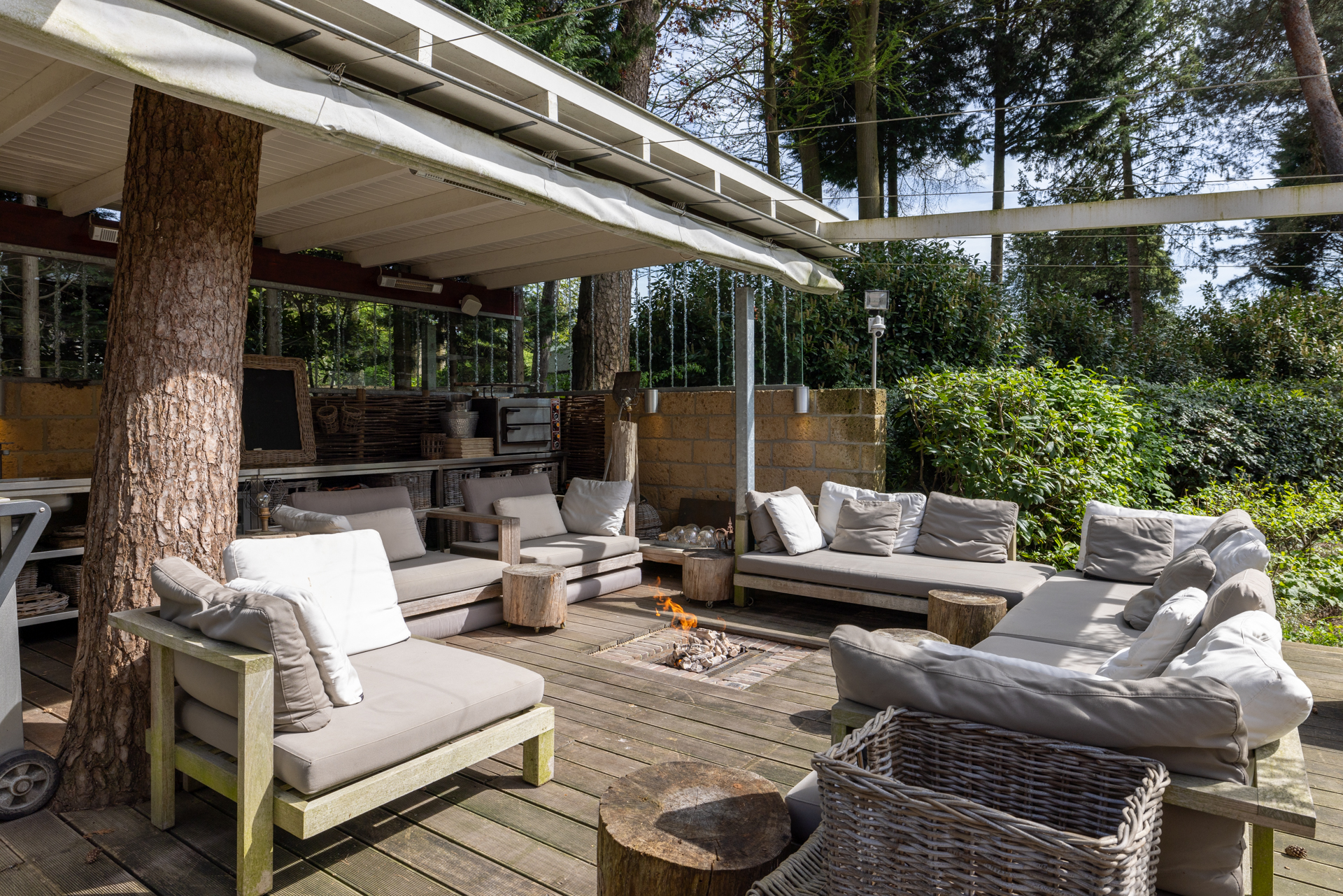 The outdoor area partly consists of a fixed roof, but also has a great lounge area with a luxurious, custom-made sail that can be removed. This lounge area also has a beautiful floor gas fireplace. The outdoor speakers, beautiful lighting and 5 electric heaters provide extra warmth and atmosphere. Even a TV connection and full WiFi network are available.