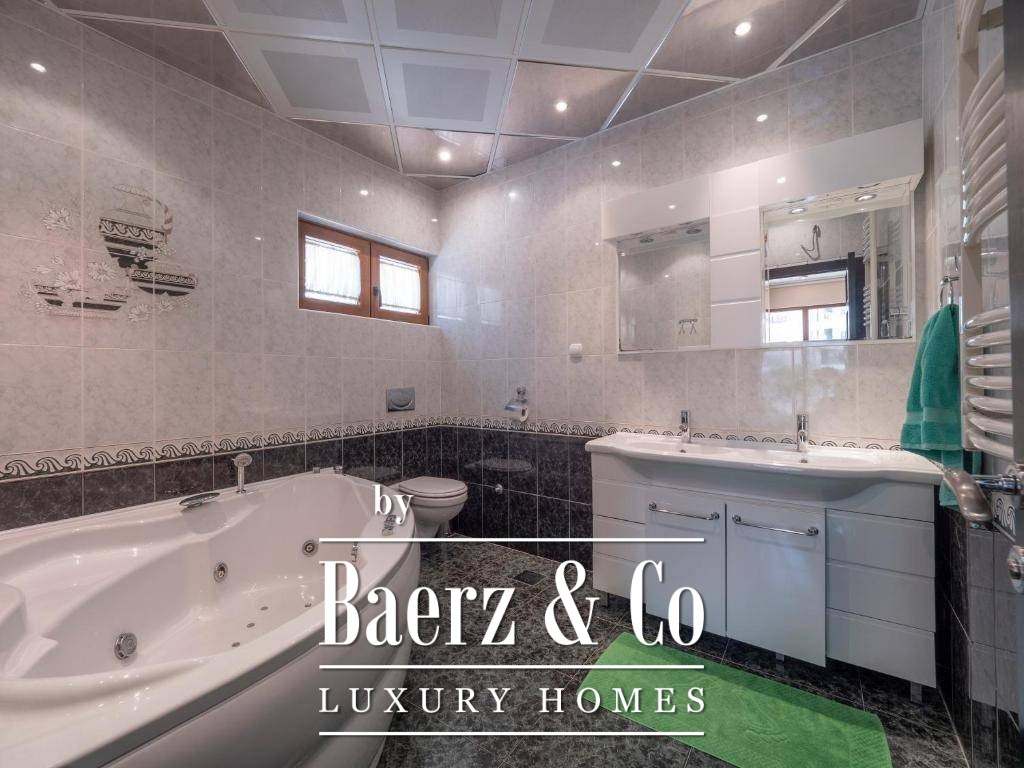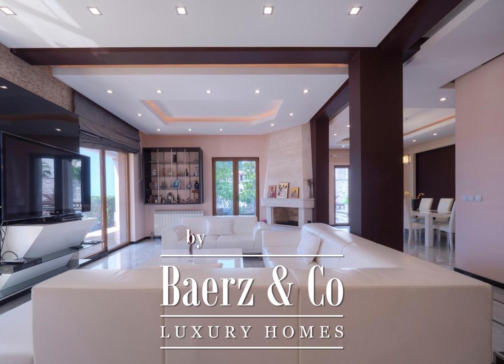 Set on a 600 m² plot, the villa spans 300 m² across two levels. The layout presents a spacious living room, an equipped kitchen, dining area, three bedrooms, and four bathrooms. Wellness amenities include a private swimming pool, fully equipped gym, and a sauna, complemented by dedicated private parking and accessibility via a paved road that links to the main route.