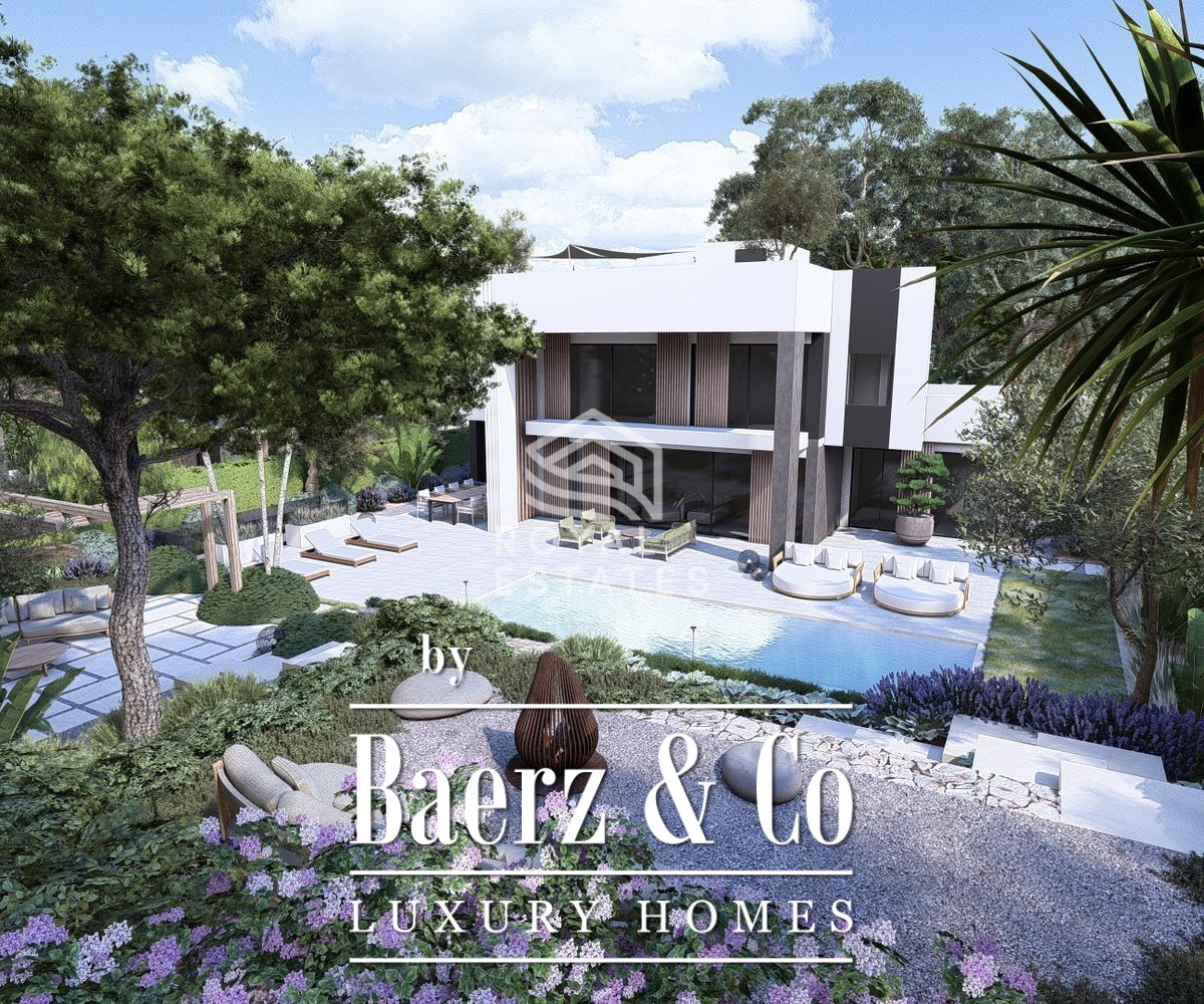 Villa for sale Cala Martina balances architectural presence with understated comfort, set moments from the coast in Spain. This newly built villa commands open sea views and effortless flow between interior and exterior spaces, offering 289 m² of living area on a 960 m² plot. Across two levels, five bedrooms and six bathrooms ensure privacy and modern luxury, while the open-plan main floor intertwines living, dining, and a Poggenpohl kitchen fitted with Miele appliances.