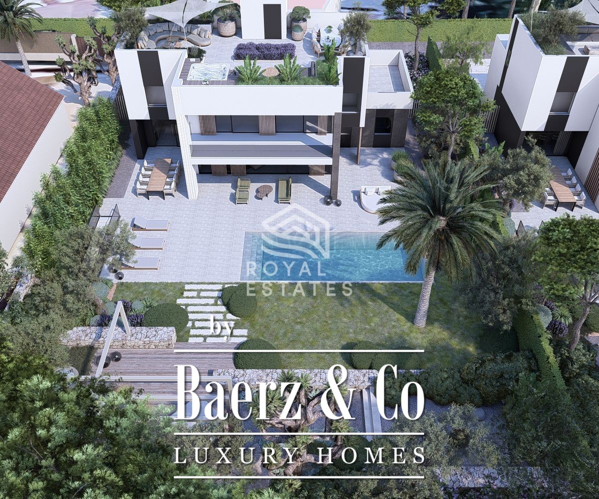 Villa for sale Cala Martina is defined by a sense of quiet confidence. Just 35 metres from the sea, this property allows the rhythm of the coastline to suffuse daily life. Conceived with contemporary architecture, its clean lines and generous glass surfaces invite natural light to shape the mood throughout the day. The living area spans 285 m², framed by terraces that gently extend towards the swimming pool and a thoughtfully restrained garden, all set within a 967 m² plot.