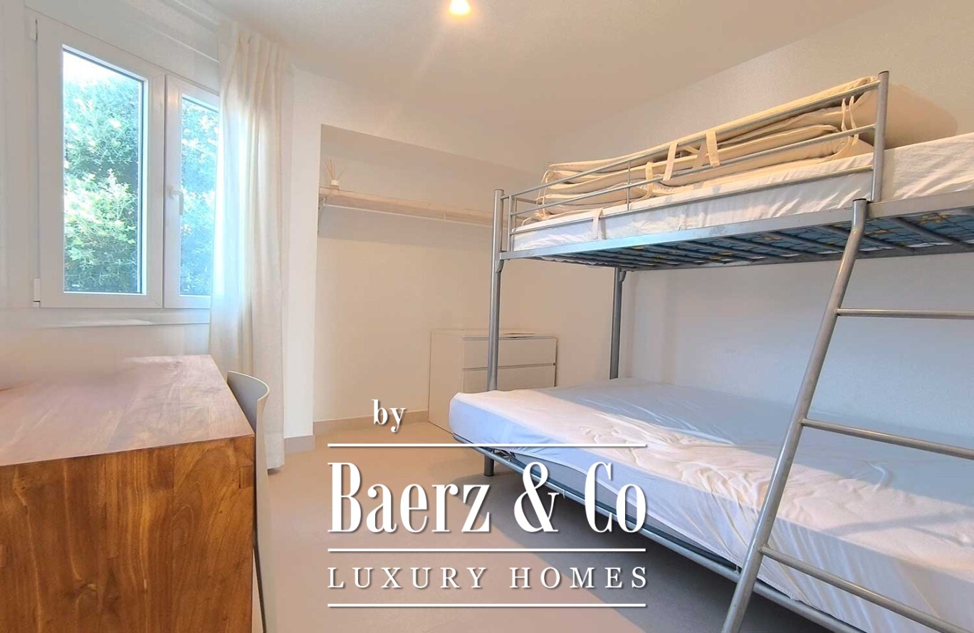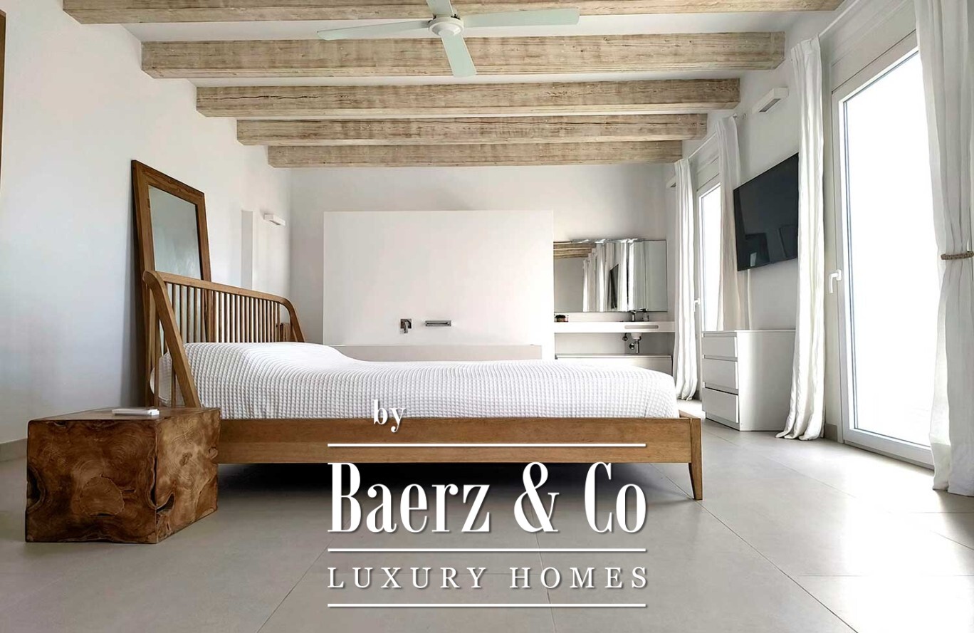 Ascending to the first floor, the master suite unfolds as a private sanctuary, opening onto its own terrace where uninterrupted sea views frame each day from sunrise to sunset. Every detail is thoughtfully curated, with air conditioning and a full suite of furnishings allowing for immediate enjoyment of the property.