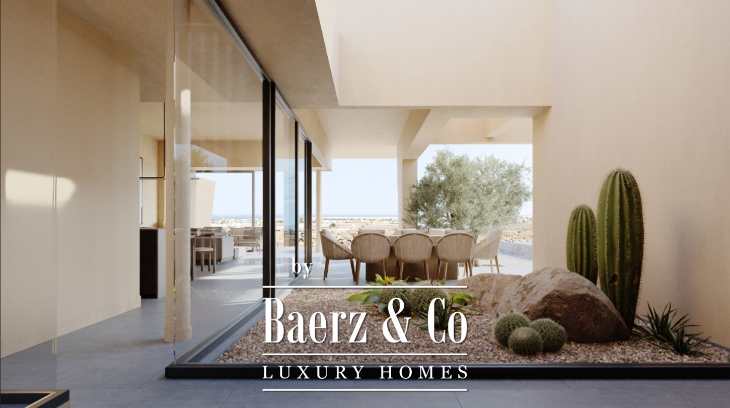 Villa Corralejo Fuerteventura is a recently completed property set across two generous plots totaling 1200 m², with 355 m² of contemporary living space. The villa is positioned to offer sweeping ocean views and striking vistas of Lanzarote and Lobos islands, creating a constant interplay of light and seascape throughout its interiors. With four double bedrooms and four bathrooms, privacy and ease are assured for both residents and guests alike.