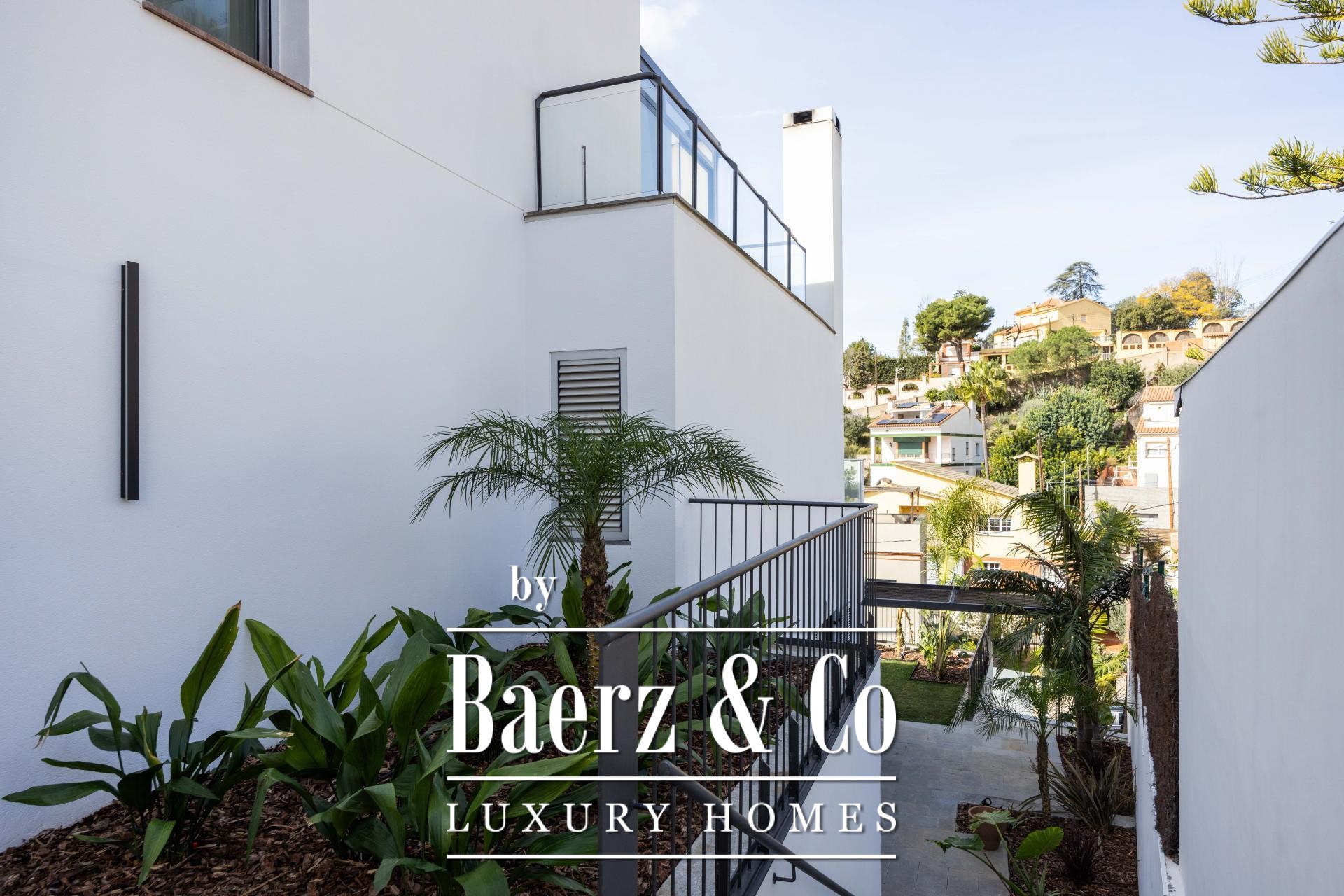 Luxury villa Esplugues de Llobregat presents a synthesis of contemporary architecture and serene Mediterranean living. This residence, renovated in 2025, offers 314 m² across three polished levels, featuring four bedrooms and four bathrooms. Unfolding within a 602 m² plot, light becomes a defining element as floor-to-ceiling windows bathe the living spaces with warmth throughout the day.