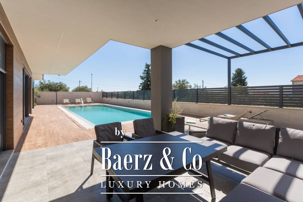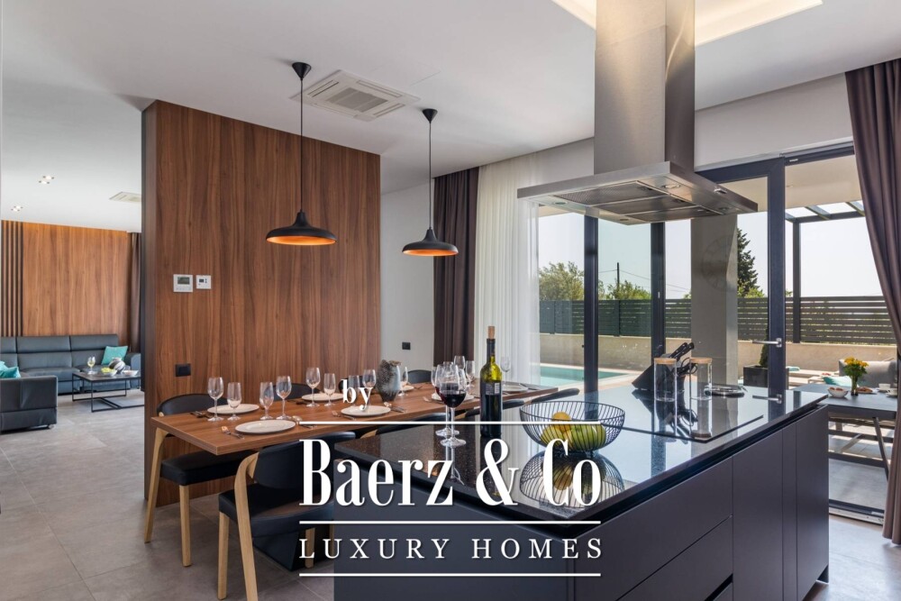 Outdoor living is elevated through a fully equipped summer kitchen, sunbathing zones with remote-controlled pool massage, and parking for three or more vehicles, all within a 625 m² plot. Built in 2020, Villa Fažana exemplifies intentional design and privacy, offering unobstructed sea views and a tranquil landscape that rewards both presence and discretion. For those seeking a luxury villa for sale in Fažana, this residence is a study in balance, space, and enduring style.