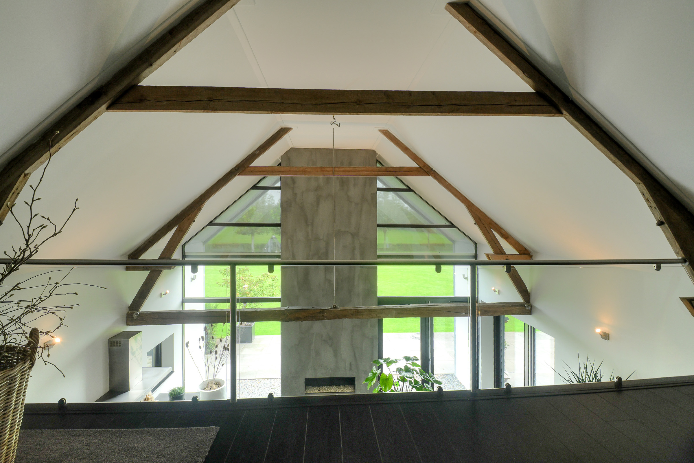The high exposed roof structure adds to the sense of space.