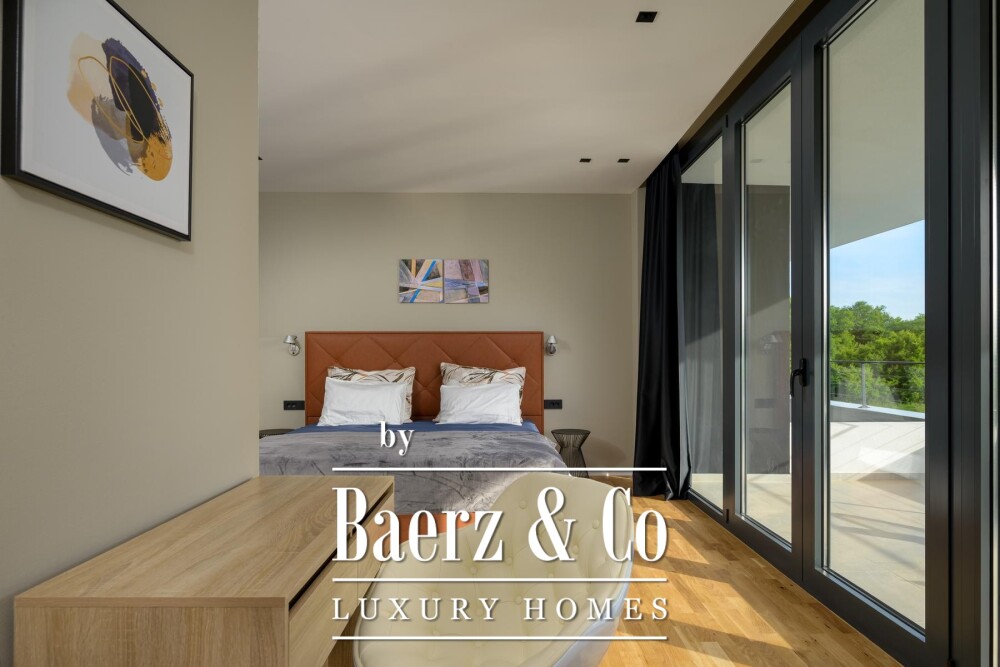 Villa Grožnjan highlights Istria’s quiet grandeur, combining architectural clarity with purposeful luxury. This villa in Grožnjan is newly built, offering 300 m² of living space set on a 2,170 m² plot, shaped by Studio 92 and punctuated by interiors from Calligaris Italia. The main level presents an open living area with Italian leather furnishings, a chef’s kitchen fitted with Nef appliances, and a seamless flow to a 222 m² covered terrace. The terrace expands to a saltwater pool, 15 metres in length and edged by a fully equipped outdoor kitchen, fostered for refined gatherings.