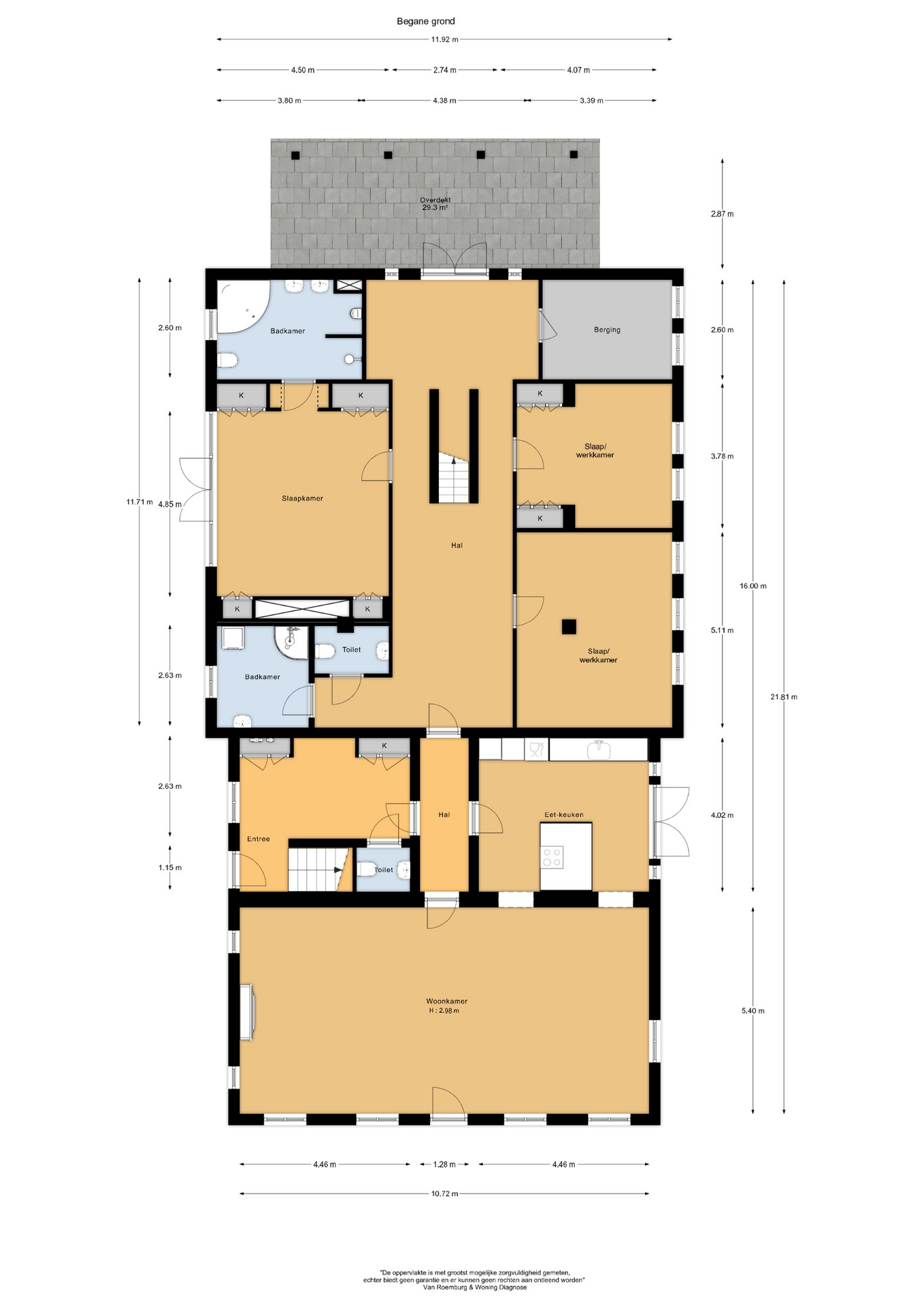Hall, impressive garden-oriented living room, dining kitchen, bedroom with adjoining bathroom, two work/bedrooms, a 2nd bathroom, utility room and second hallway with access to the terrace under the Gelderland overhang on the first floor.