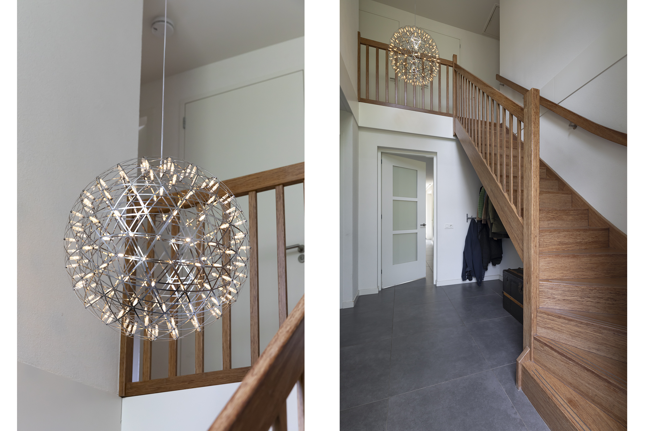 The utility room is a practical, pleasant space with connections for the washing machine and dryer, as well as a water connection for an American-style refrigerator, for example. There is a spacious built-in cupboard with sliding doors. The utility room is accessible from the kitchen. The garage and the back garden are also accessible from the utility room.