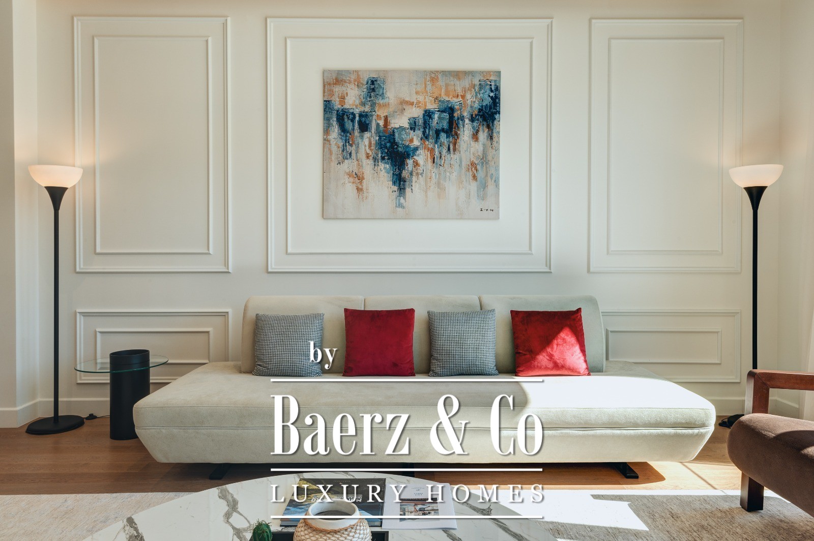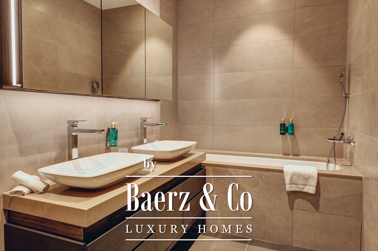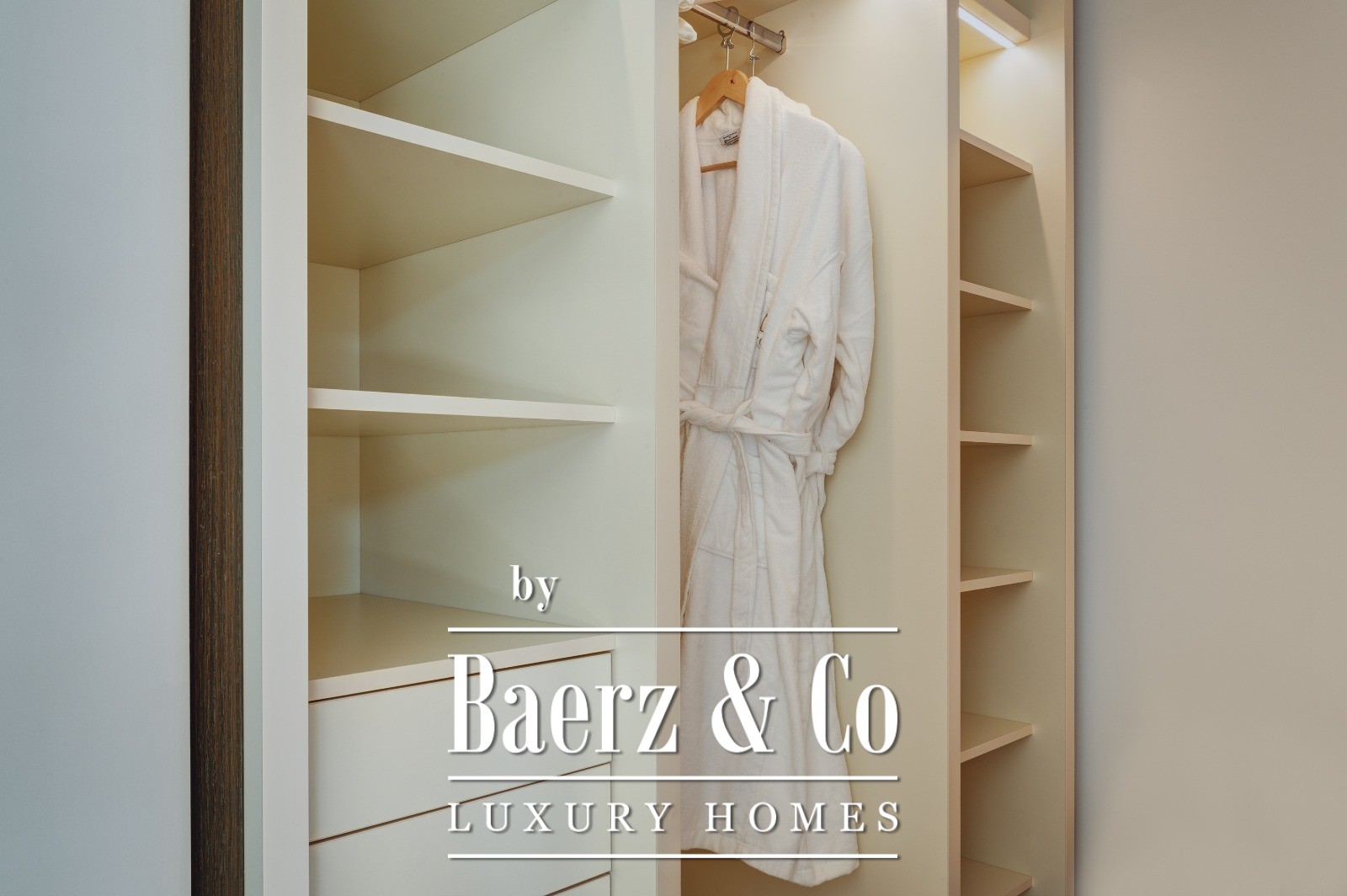 The living space is arranged with care, comprising a generous hallway, living room with dedicated kitchen and dining area, four bedrooms, three bathrooms, a guest toilet, and three terraces that open to views of the sea, marina, and mountains beyond. Fully furnished and thoughtfully detailed, the apartment is ready for immediate move-in. Residents benefit from dedicated maintenance services and the use of the complex’s pools, beaches, and sports facilities, providing both ease of living and leisure.