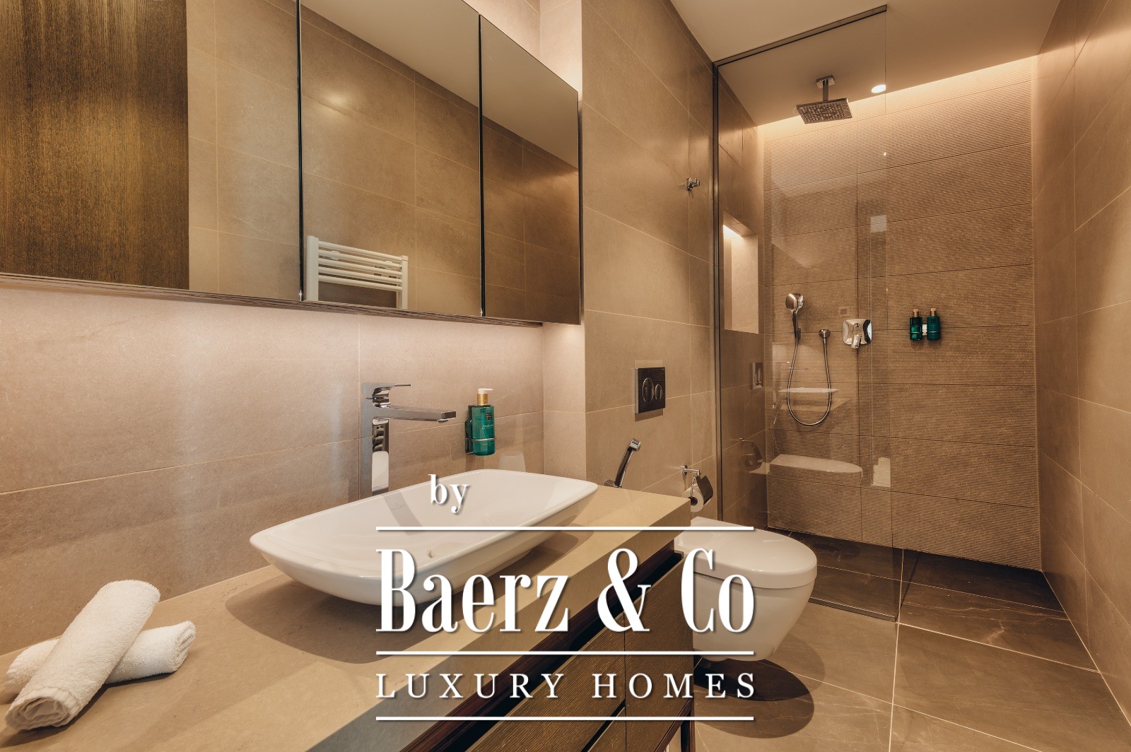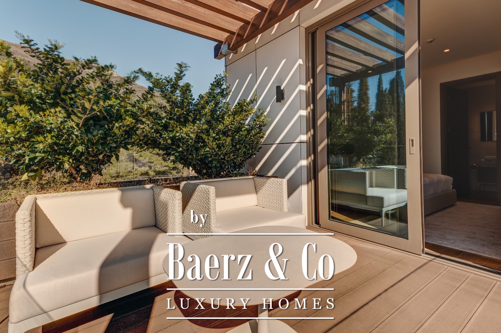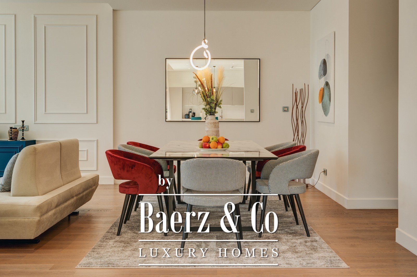 The living space is arranged with care, comprising a generous hallway, living room with dedicated kitchen and dining area, four bedrooms, three bathrooms, a guest toilet, and three terraces that open to views of the sea, marina, and mountains beyond. Fully furnished and thoughtfully detailed, the apartment is ready for immediate move-in. Residents benefit from dedicated maintenance services and the use of the complex’s pools, beaches, and sports facilities, providing both ease of living and leisure.